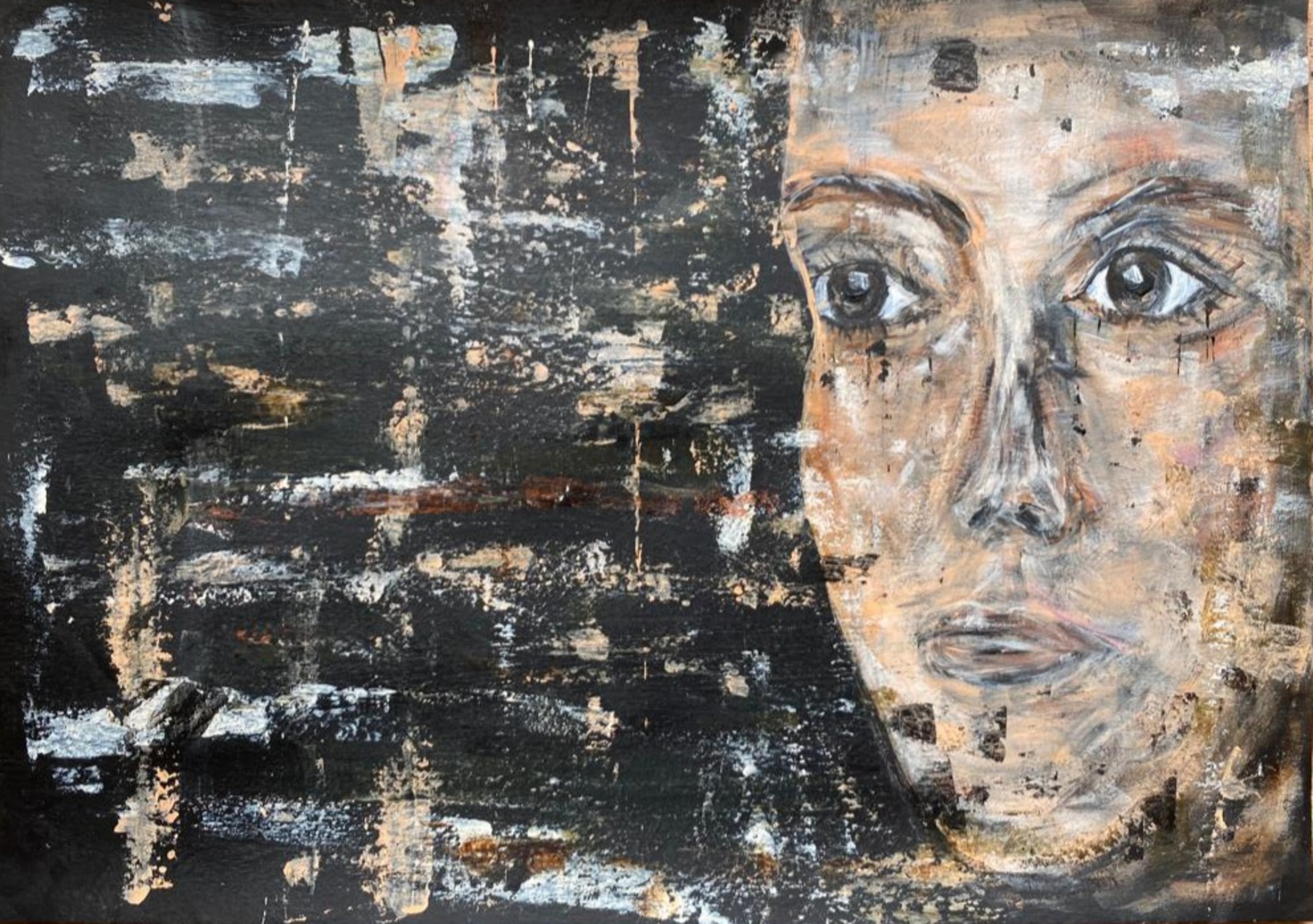 In gedachten verzonken. Gemaakt met acrylverf op papier.