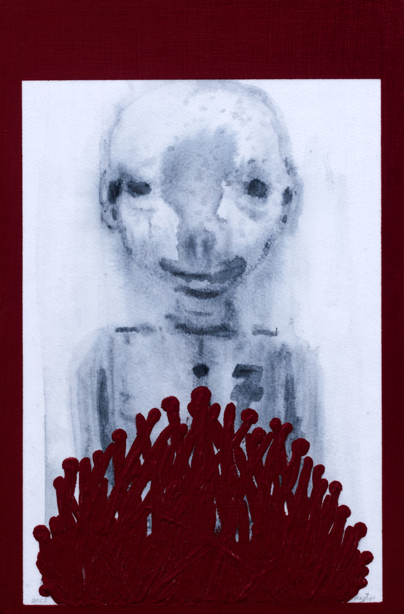 Mens Nummer7 Ongeluk Karmijn Figuratief Aquarelverf Acrylverf