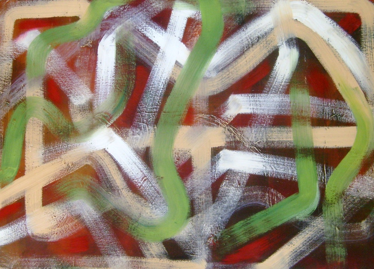 Al schilderend m'n weg volgen... ontmoetingen en samenzijn met zowel mens als dier liggen aan de basis van deze abstracte werken. De 'kriebels' om te gaan schilderen had ik al héél lang. Meermaals heb ik op het punt gestaan om me hier of daar in te schrijven, maar daarvoor was m'n leven te druk op dat moment. Pas in 2006 was het eindelijk zover! Aan de Academie Arendonk ging een droom in vervulling.