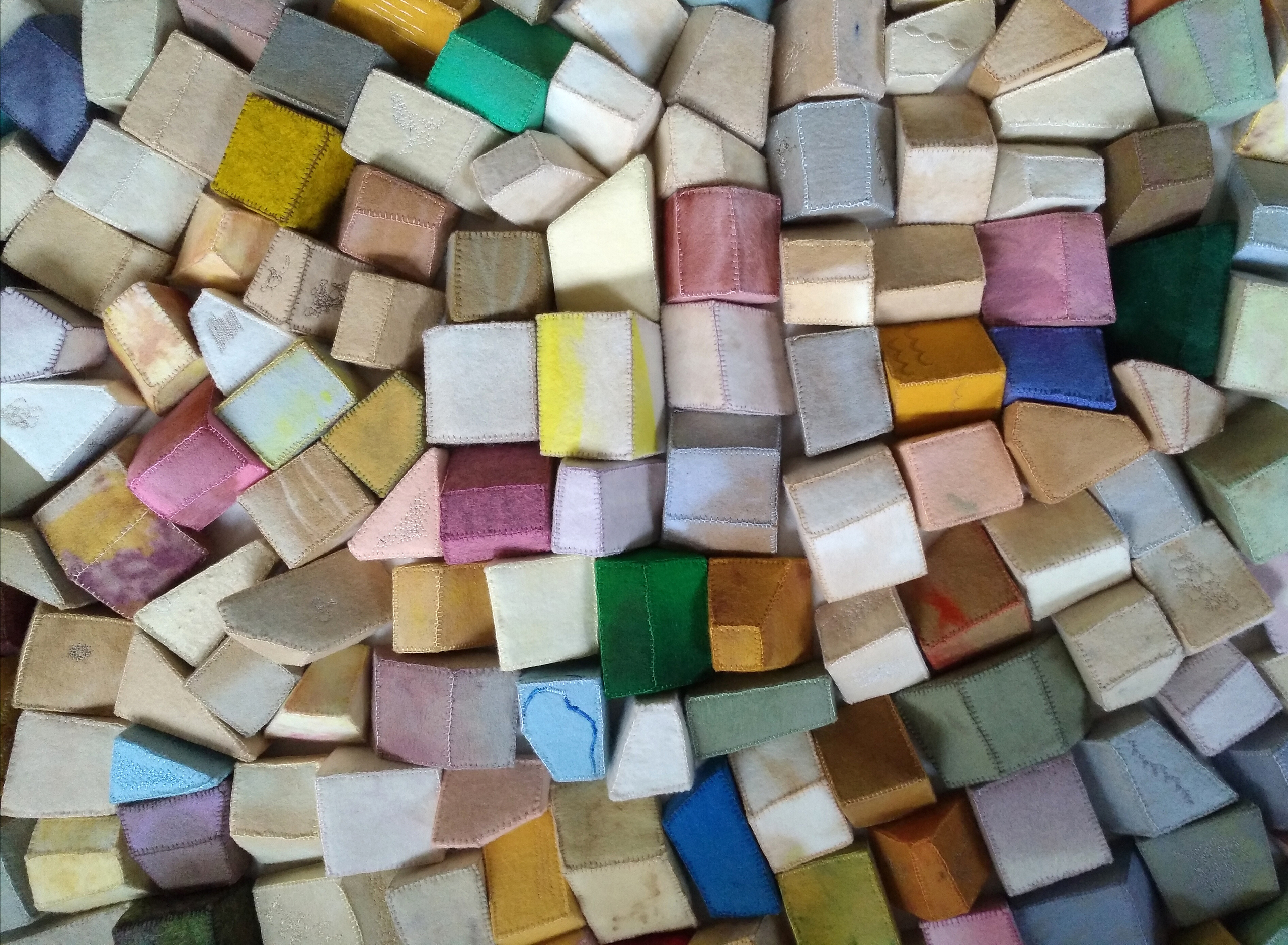 deels handgeverfd vilt, borduurzijde, foam, diverse afmetingen (< 10 cm), 11-2017 tot en met heden.