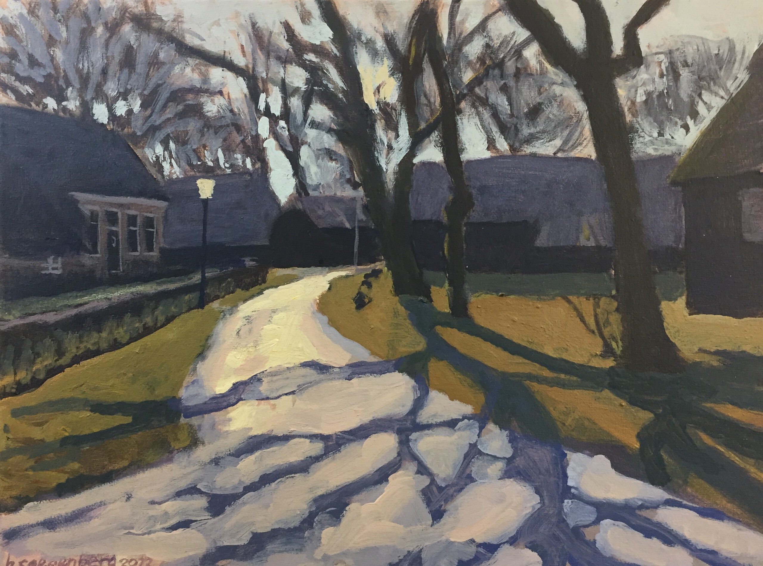 In maart buiten geschilderd langs de brink in Oud Aalden.