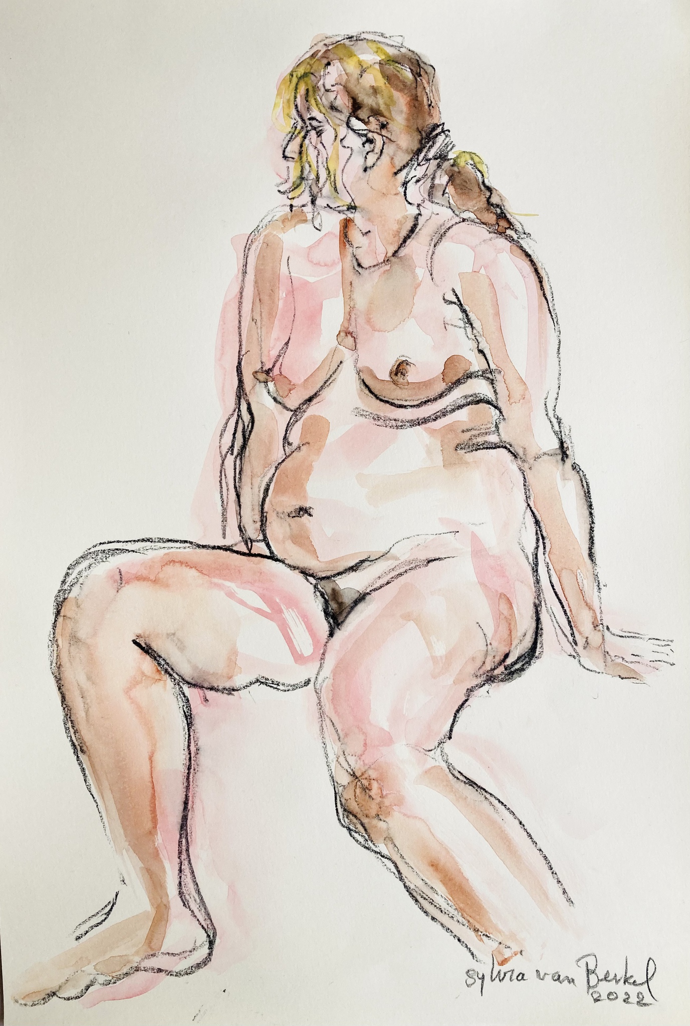 Vrouw Naakt Aquarel