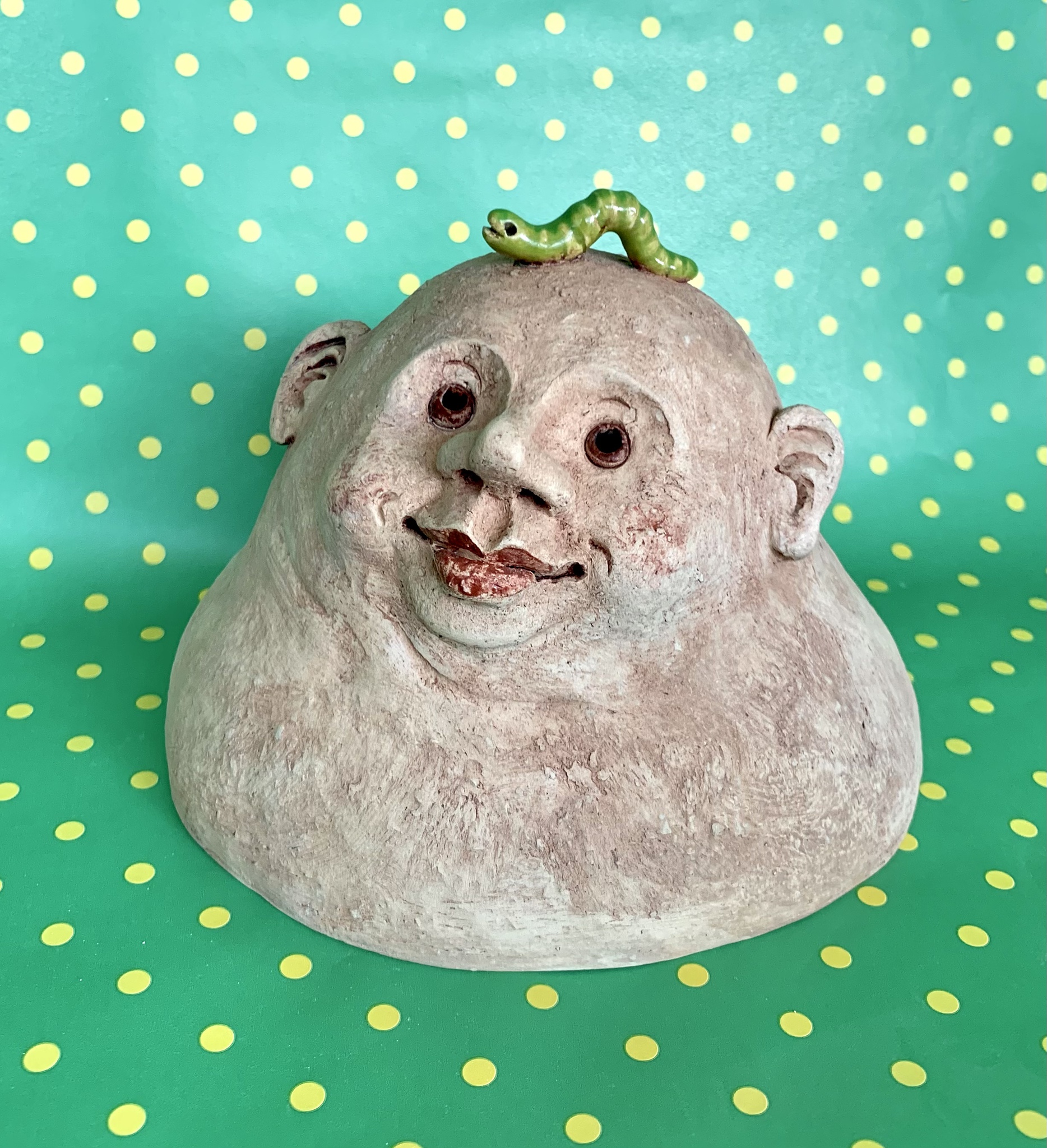 Gezellige fransoos met rups op zijn hoofd