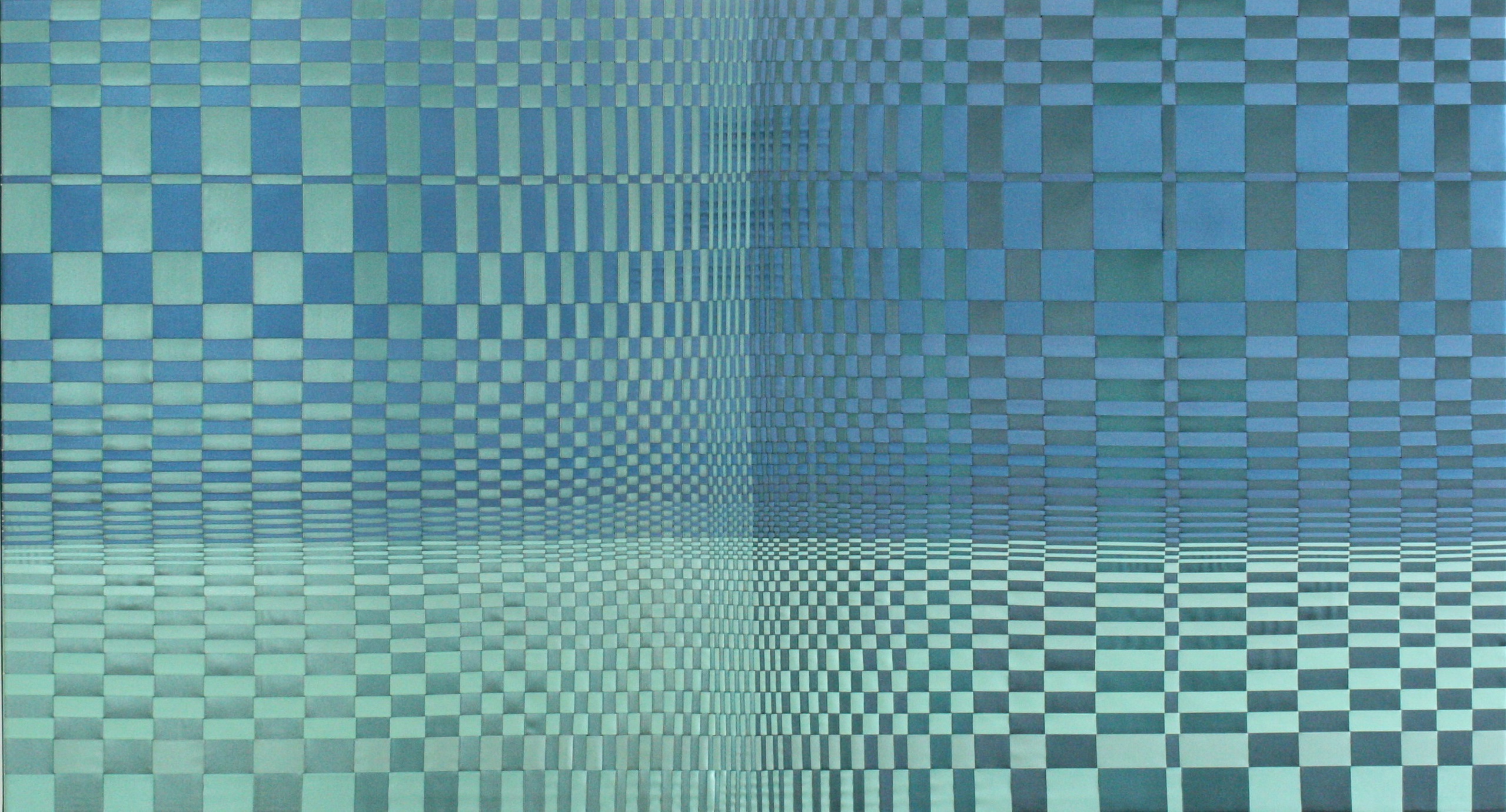 Abstract Landschap Blauw Groen Water Natuur Textiel Lint Strak Minimalisme Geometrisch Meer Weven Illusie Vlechten Petrol Satijnlint Accoustisch