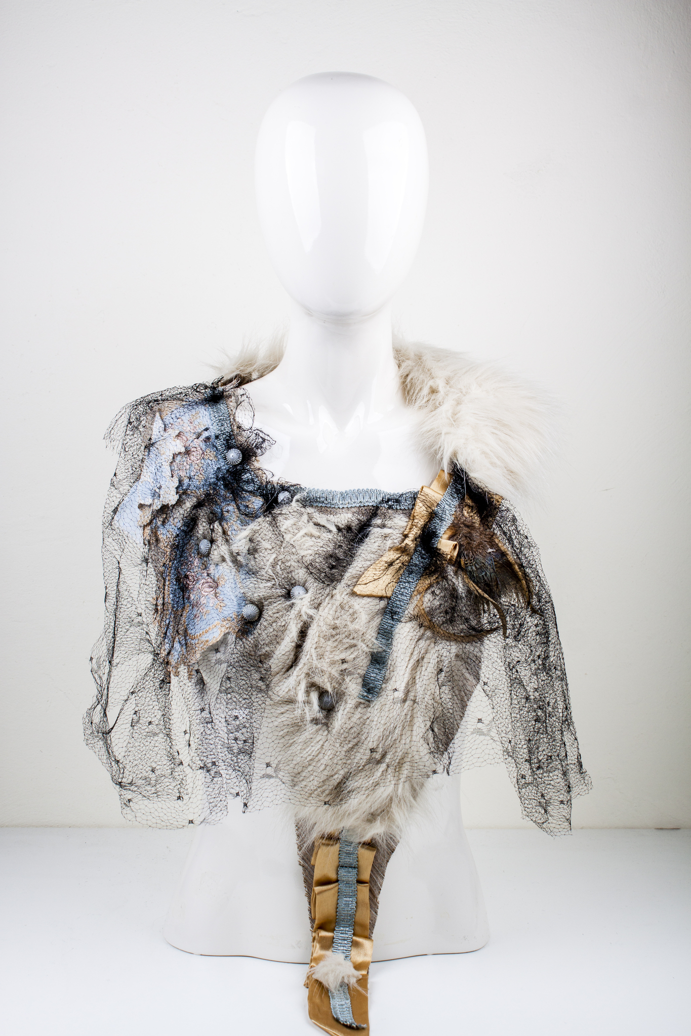 Struisvogelveren Parijs Kunstobject Unicum Kleding Draagbaar Kraag Paardenhaar Schikken Gitten Mouleren Draperen Zijdetule Hoedenveren