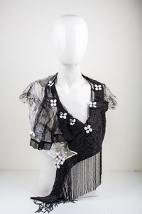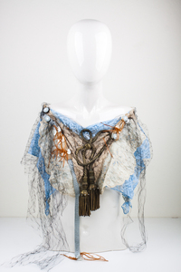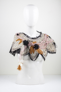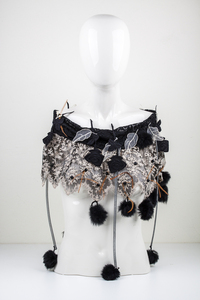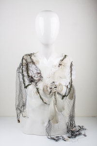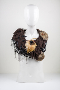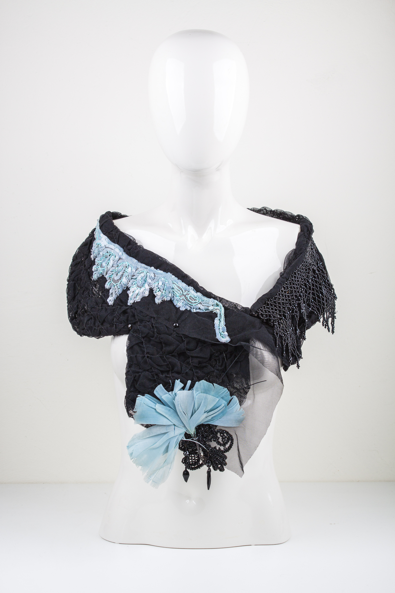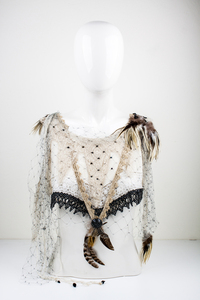 Struisvogelveren Parijs Kunstobject Unicum Kleding Draagbaar Kraag Paardenhaar Schikken Gitten Mouleren Draperen Zijdetule Hoedenveren