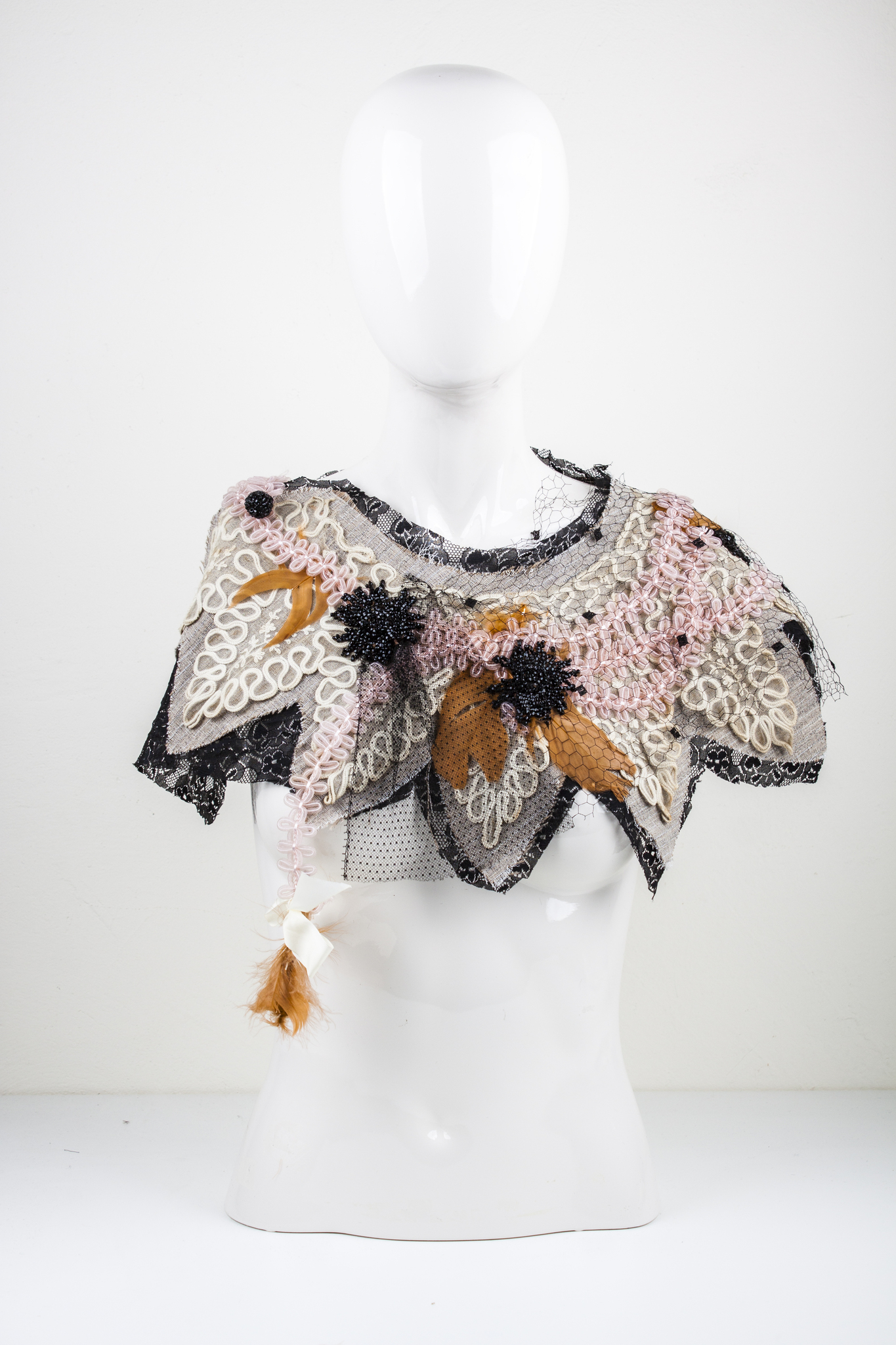 Struisvogelveren Parijs Kunstobject Unicum Kleding Draagbaar Kraag Paardenhaar Schikken Gitten Mouleren Draperen Zijdetule Hoedenveren