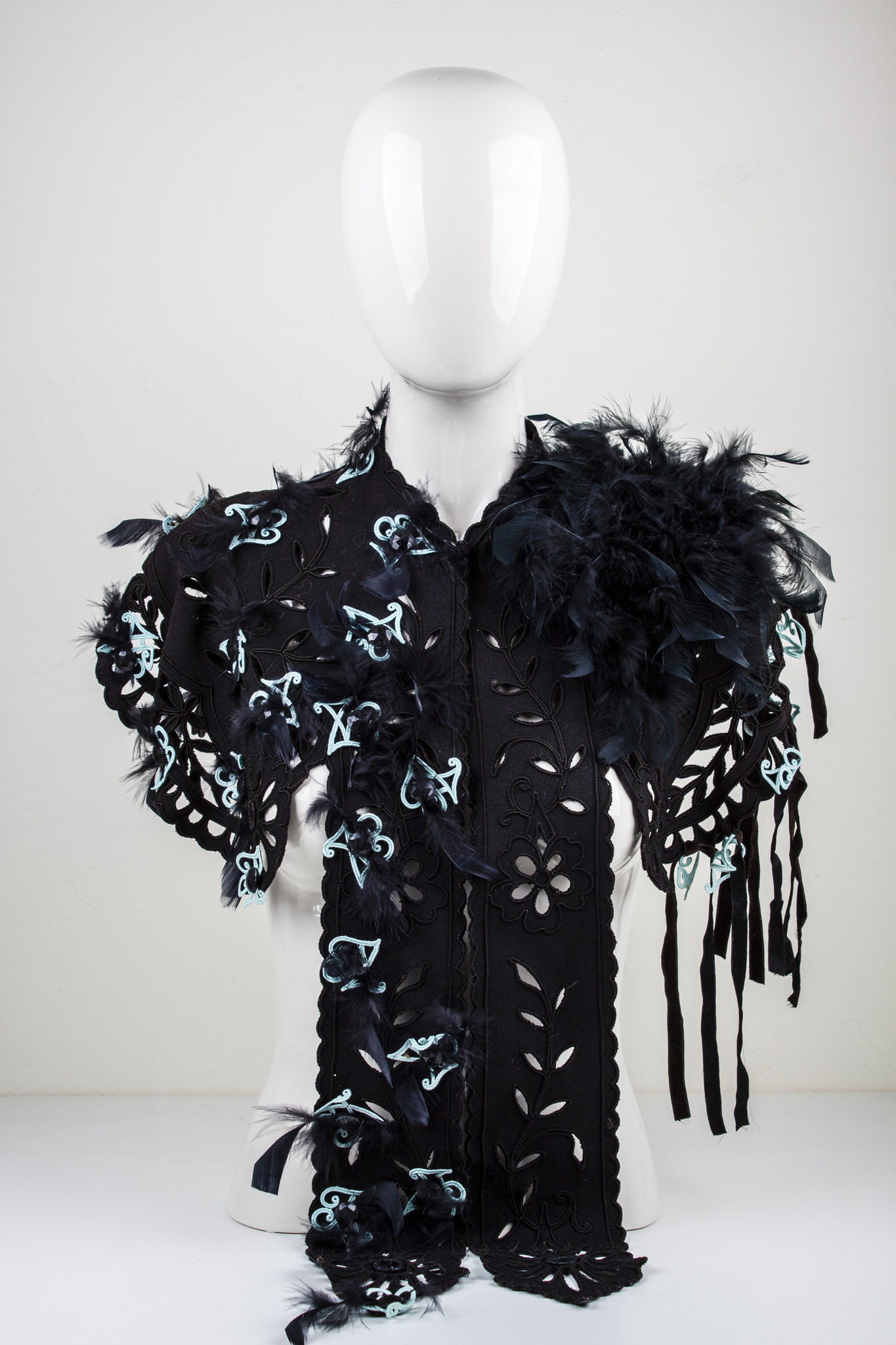 Struisvogelveren Parijs Kunstobject Unicum Kleding Draagbaar Kraag Paardenhaar Schikken Gitten Mouleren Draperen Zijdetule Hoedenveren
