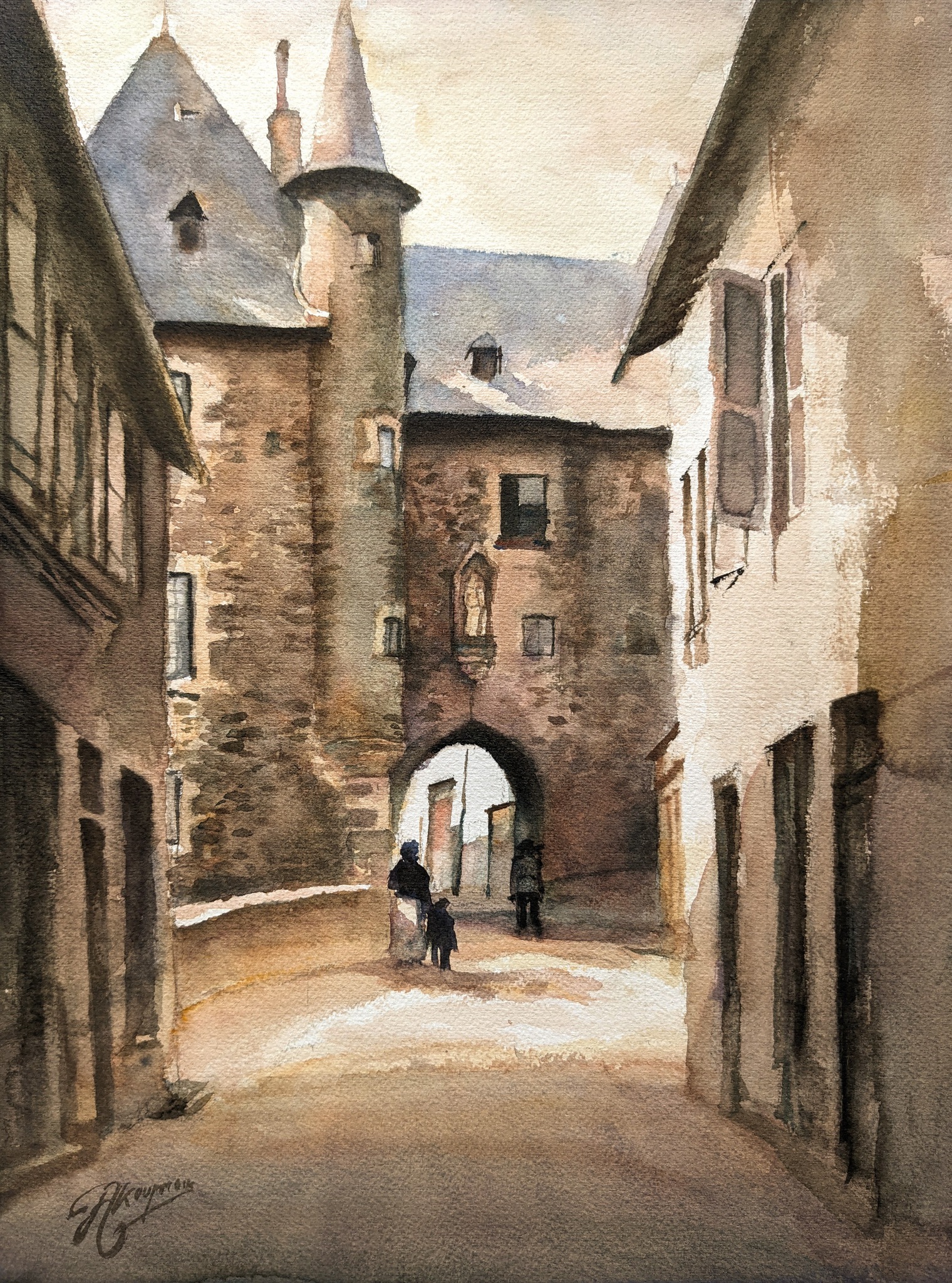Frankrijk Aquarel Realistisch Architectuur Watercolor Kasteel Castle Poort Chateau Medieval France