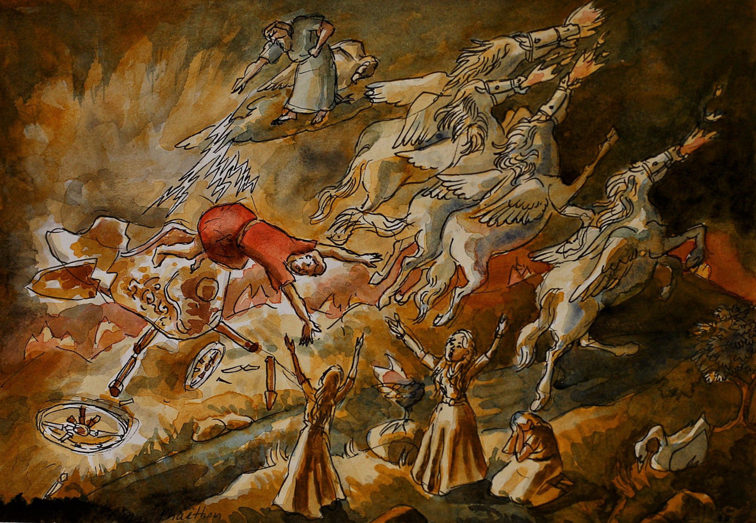 Figuratief Realistisch Aquarel Mythe Phaëton