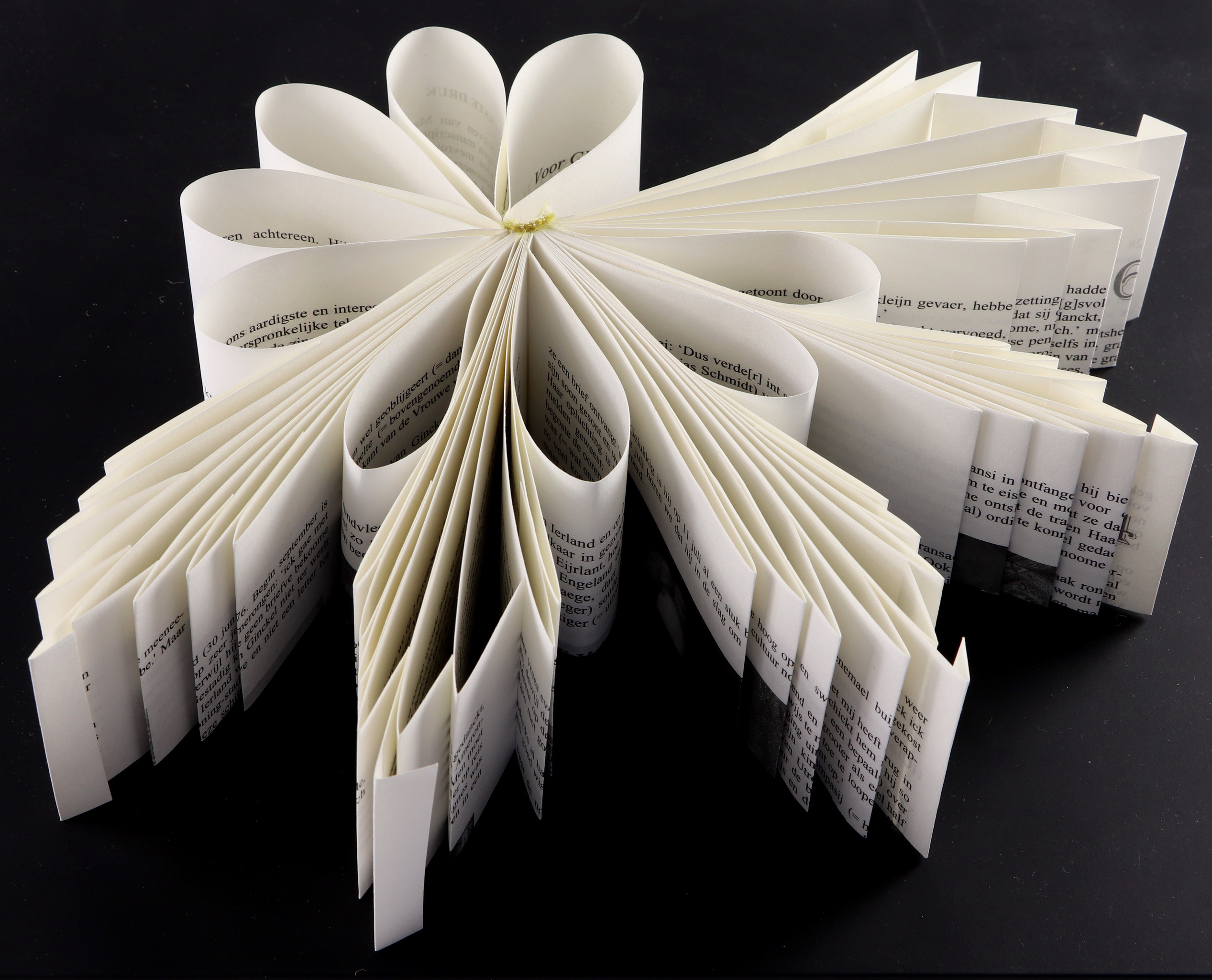 kwart boek gevouwen in origami techniek in zwarte lijst met zwart handgeschept papier