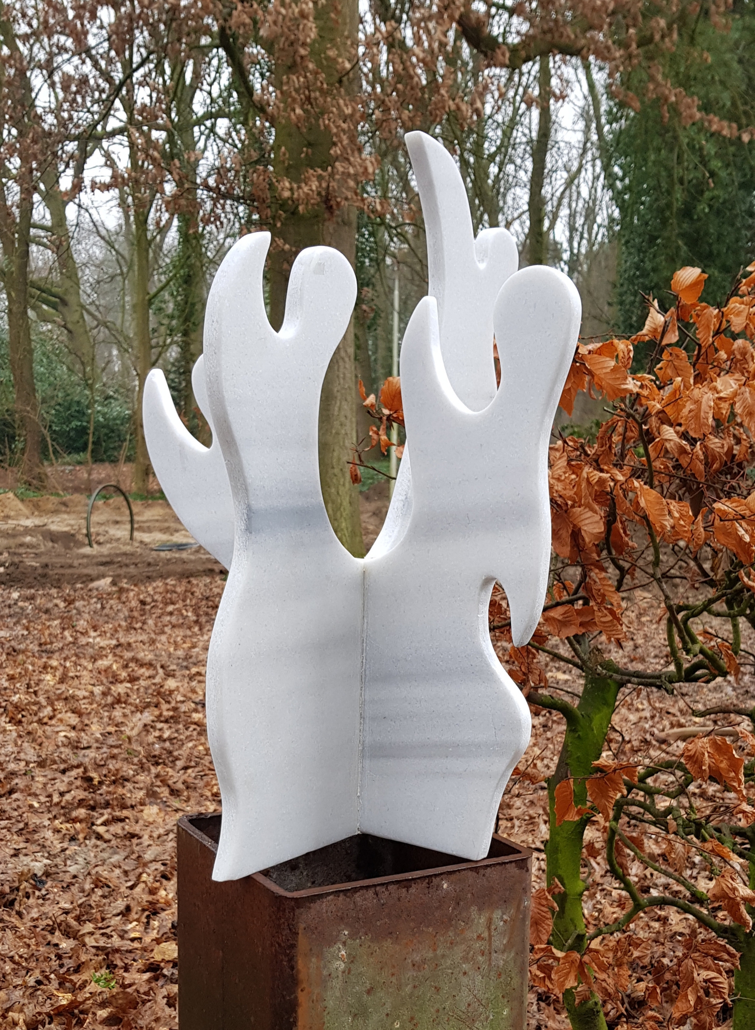 Bij mijn marmeren beelden ben ik geinspireerd door de vrouw, het begin van het leven en natuurlijke vormen.