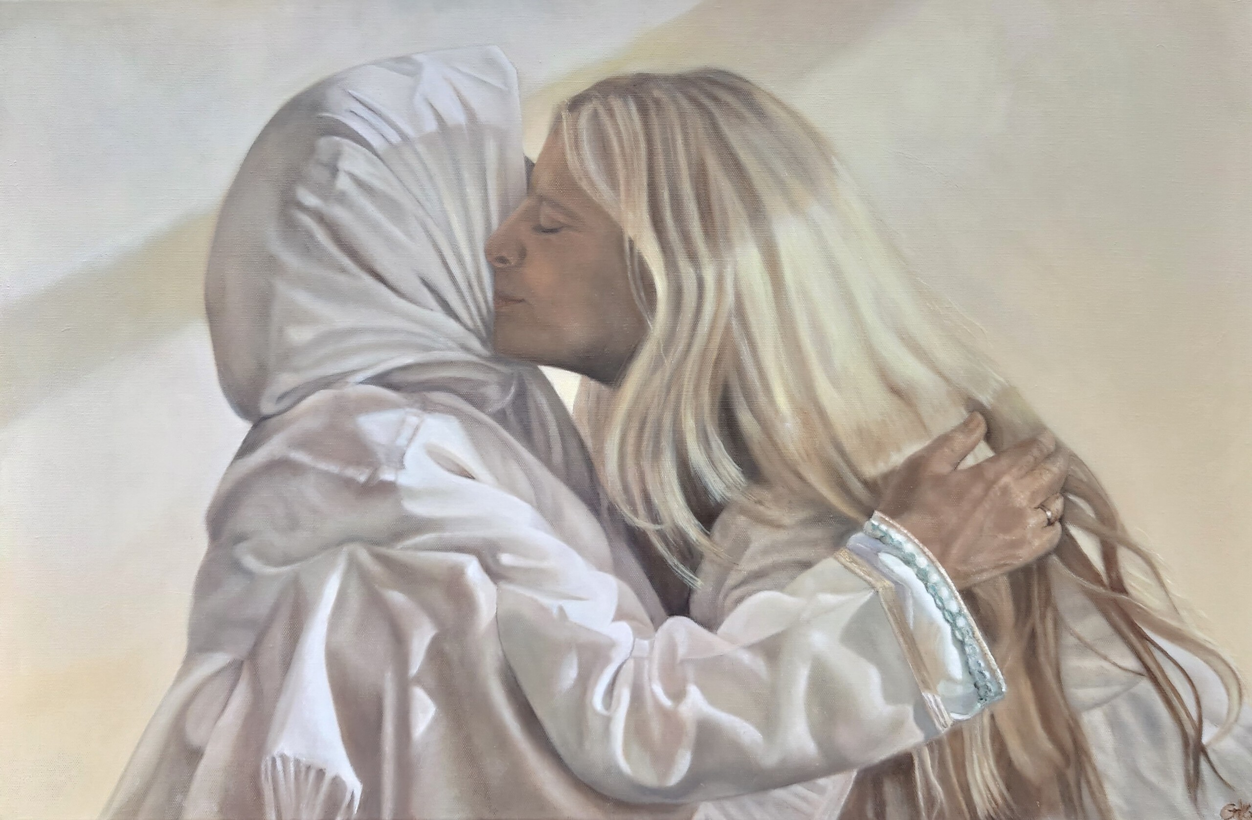 Voor mij is het 'diep menselijk' om niet onverschillig te zijn voor het verschil wat je ziet tussen jou en de ander, maar dat wat je tegenkomt in jezelf en in anderen juist te omarmen . Omarmen gaat verder dan elkaar op afstand ontmoeten en gaat verder dan de buitenkant van wat we zien. Niet alleen 'laten zien' wie we zijn, maar elkaars hart en ziel ontmoeten. In de ontmoeting verkennen wat er verborgen is in onszelf en in de ander. Dit werk doet een specifiek beroep op de binnenkant, om het licht van de ander te omarmen en van Degene die ons geschapen heeft zoals we werkelijk zijn.