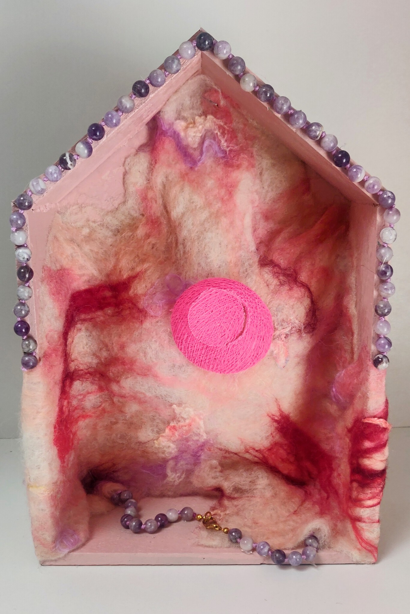 Kinderwens altaartjes: mixed media collages in kleine behuizing over (wens)moederschap zonder roze wolk.