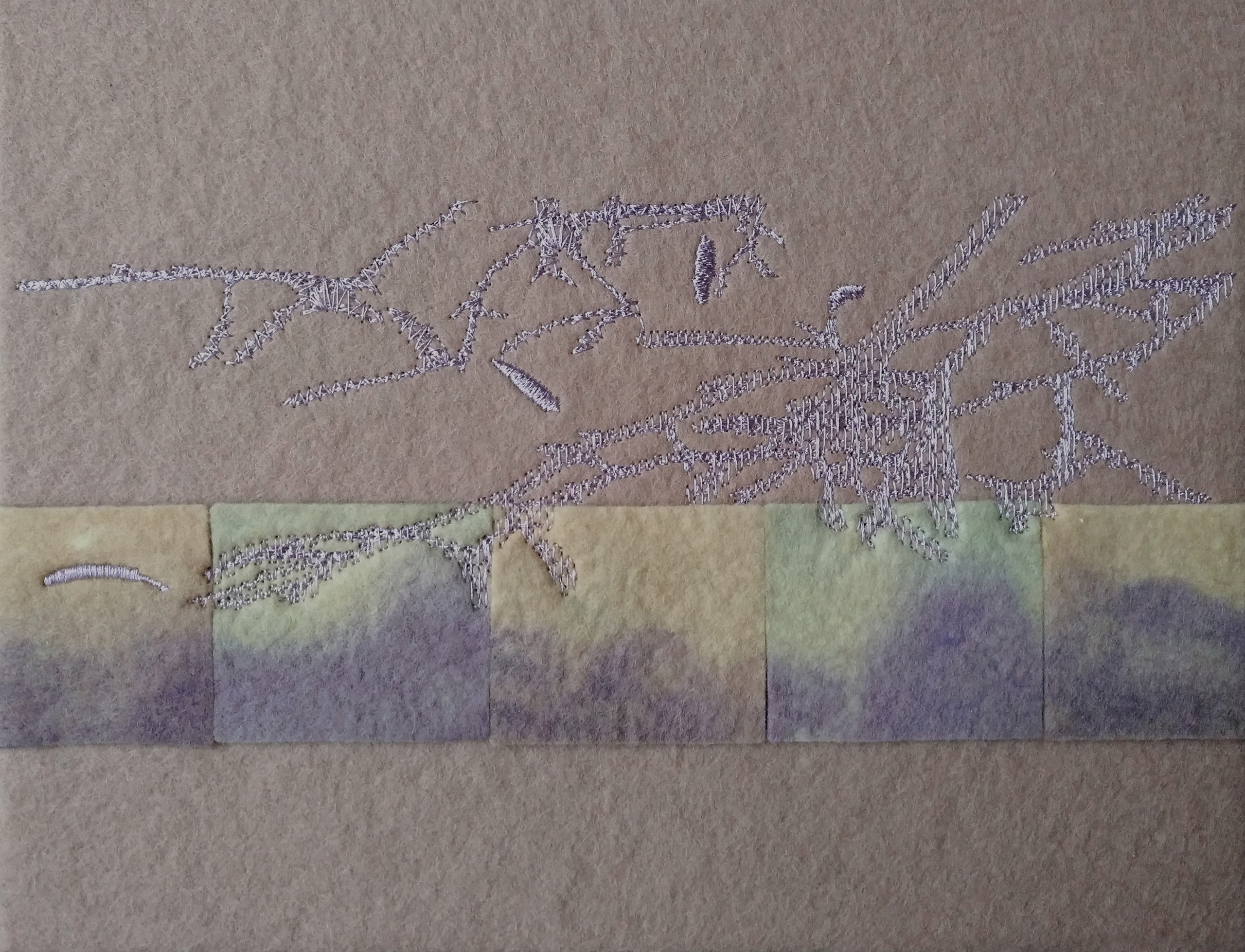 wolvilt, glansgaren, MDF.