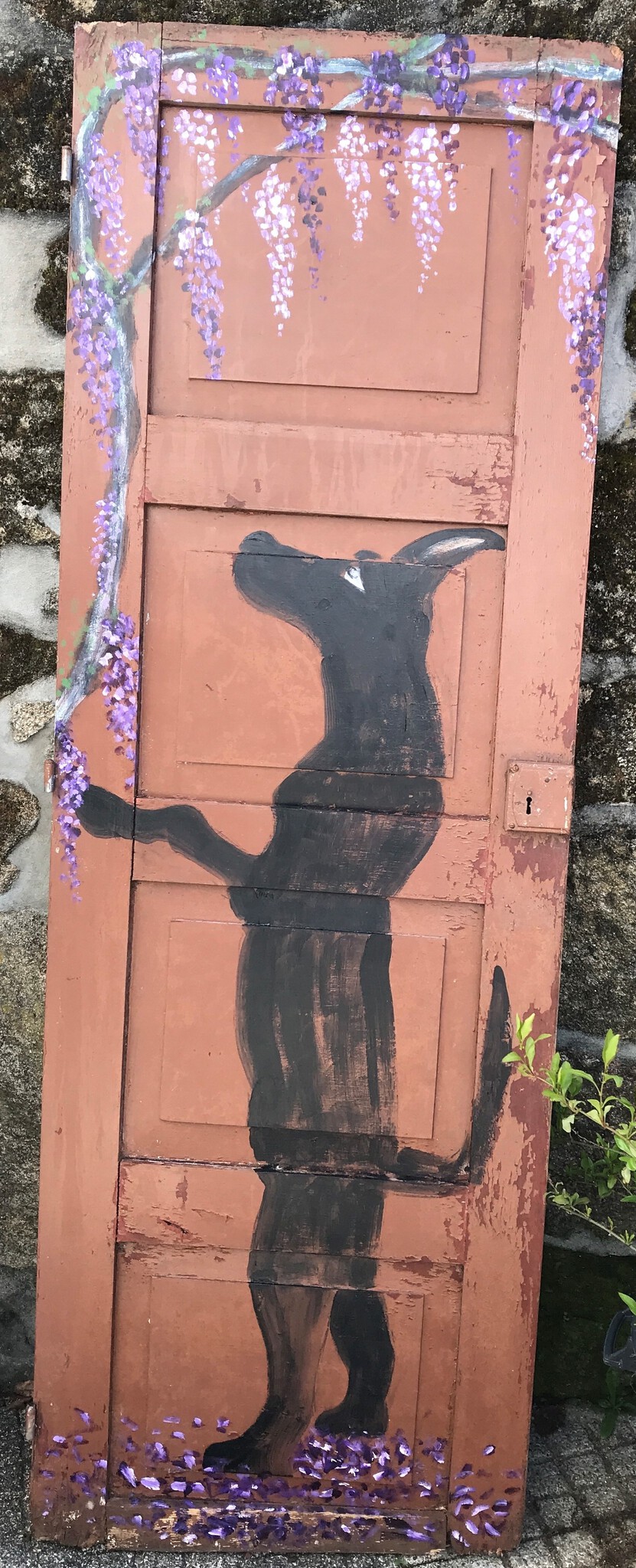 Dier Bloem Acrylverf Hond Deur Blauweregen Wisteria Recycleart Recyclekunst