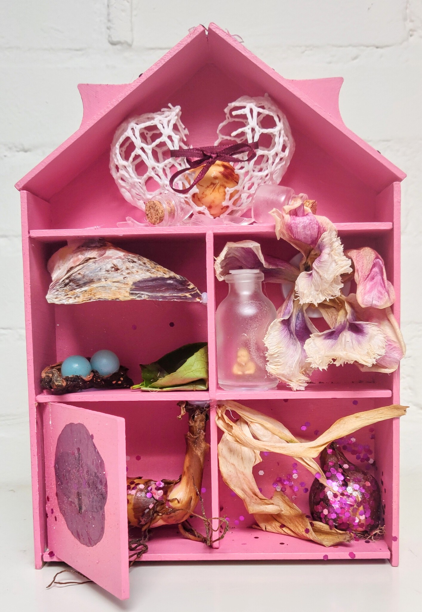 Figuratieve kleurrijke schilderijen met aquarel of olieverf. onderwerpen uit natuur zoals vogels. Neigt naar abstractie door intuïtieve werkwijze. Ook mixed media en kleine en grote installaties.
