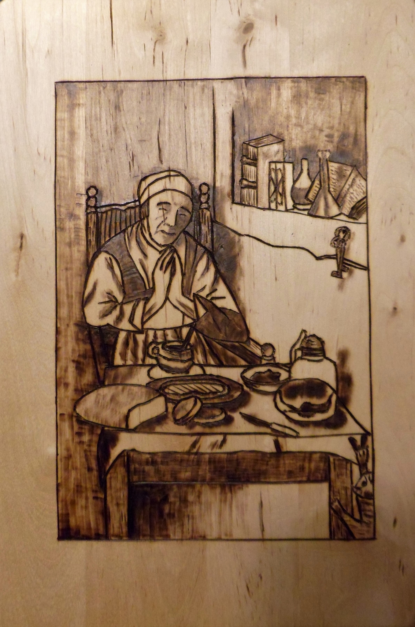 Vrouw Hout Biddende Bidden Handmade Houtbranden Mariette