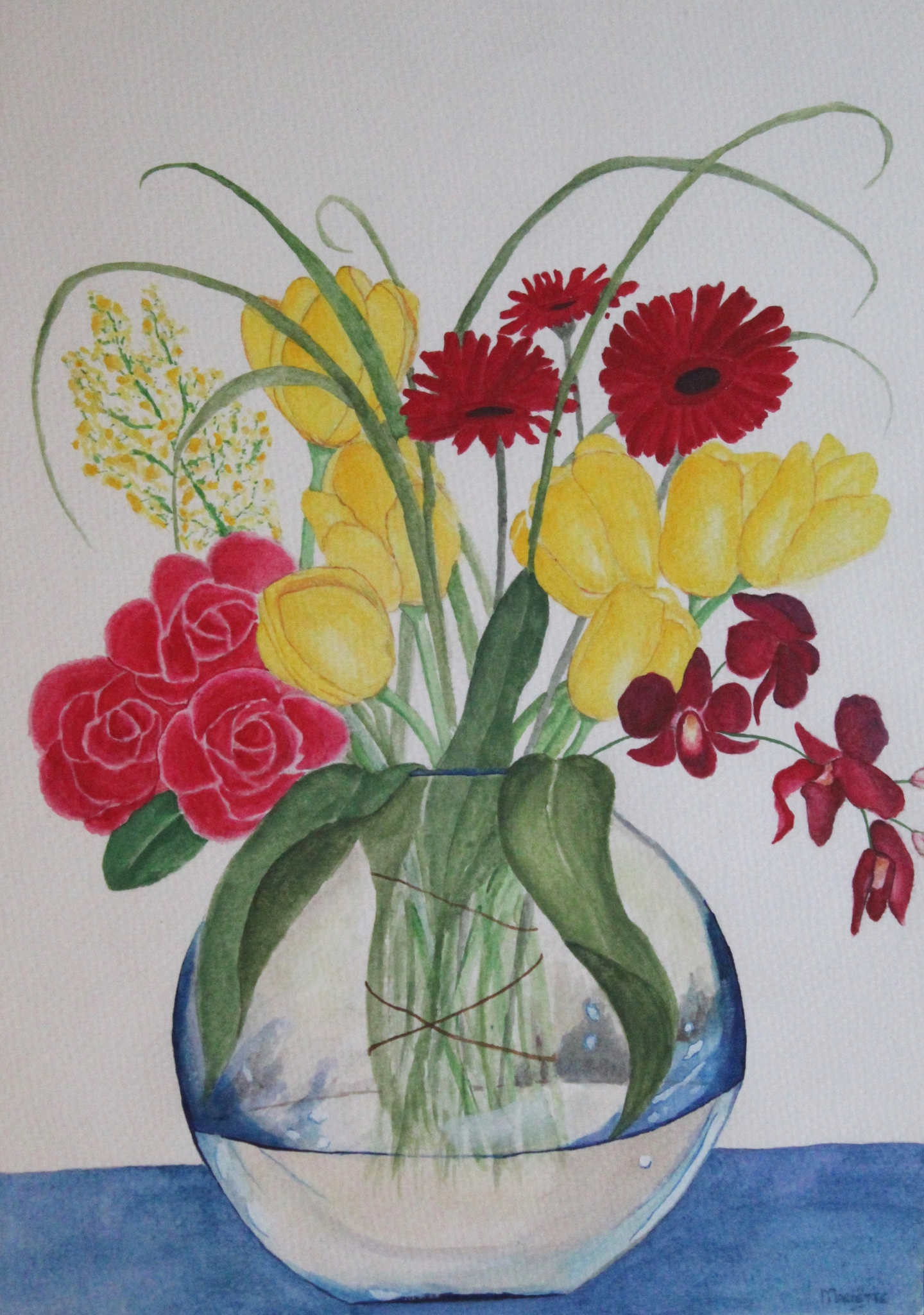 Boeket bloemen geschilderd met de aquarel techniek. Mijn eerste aquarel werkstuk