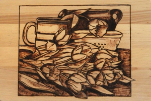 Hallo, ik ben Mariette uit Hoogeveen. Mijn favoriete materiaal is hout en papier. Als hobby's heb ik o.a. houtsnijden in 3D, houtbranden, tekenen en schilderen