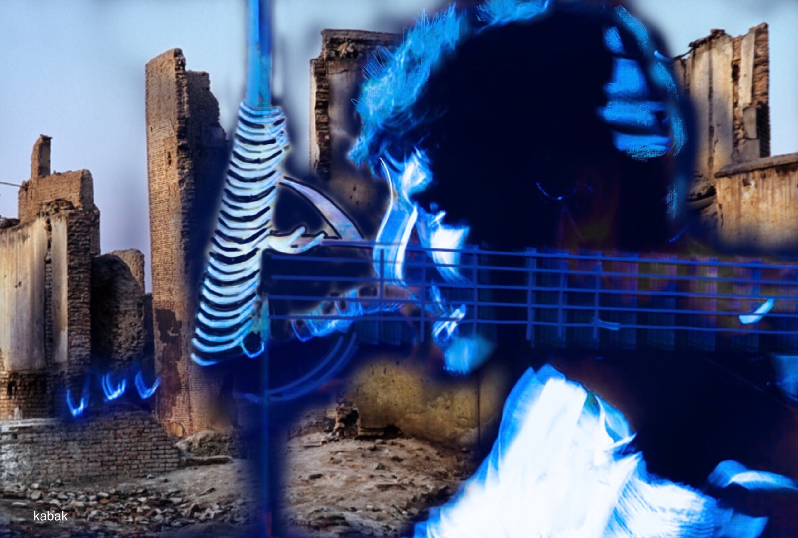 Muzikant temidden van verwoesting