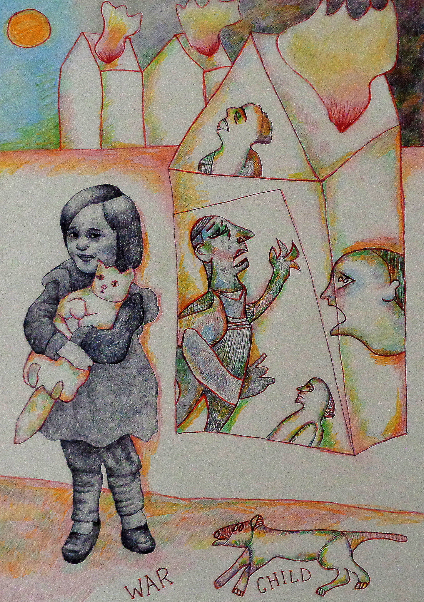 Vrij werk in ballpoint stift en kleurpotlood