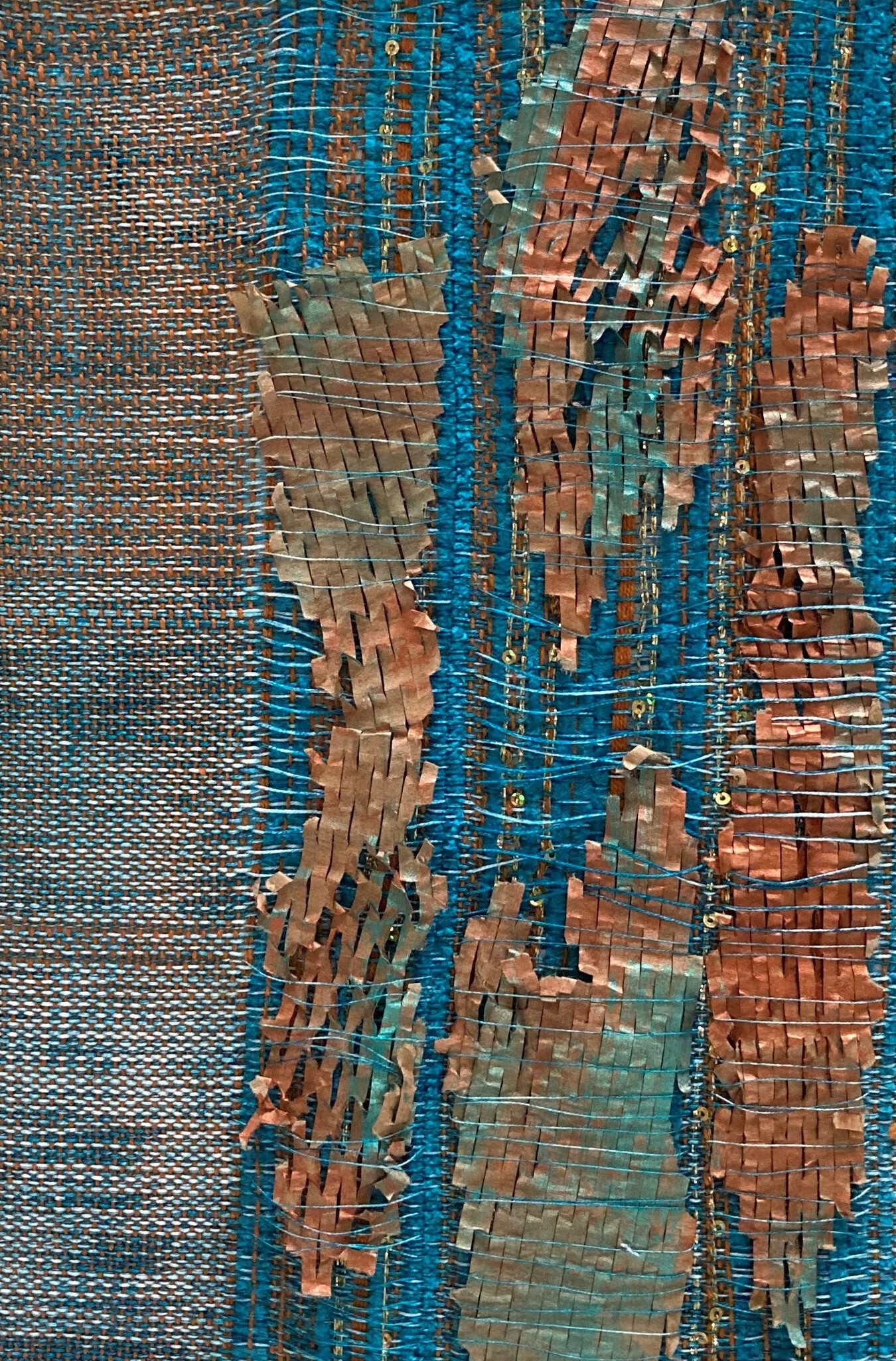 Suze werkt met textiele materialen. Ze werkt in een zeefdruktechniek, en zo maakt ze een abstracte weergave van een thema, gedicht en of intuitief.