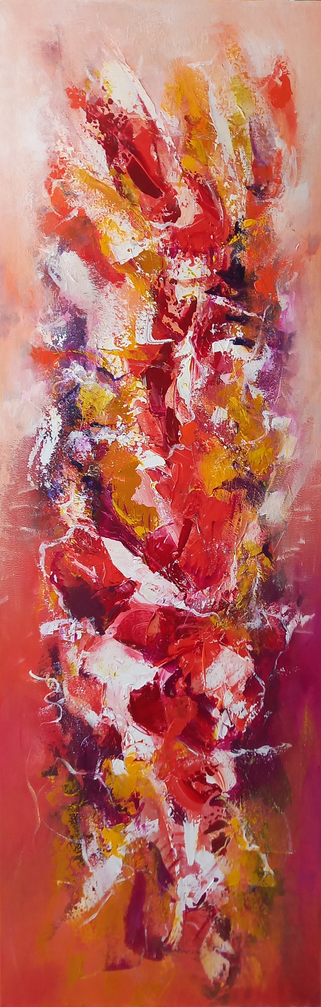 Schilderij Abstract Rood Oranje Acryl Kleurrijk Vrolijk Verticaal Blikvanger