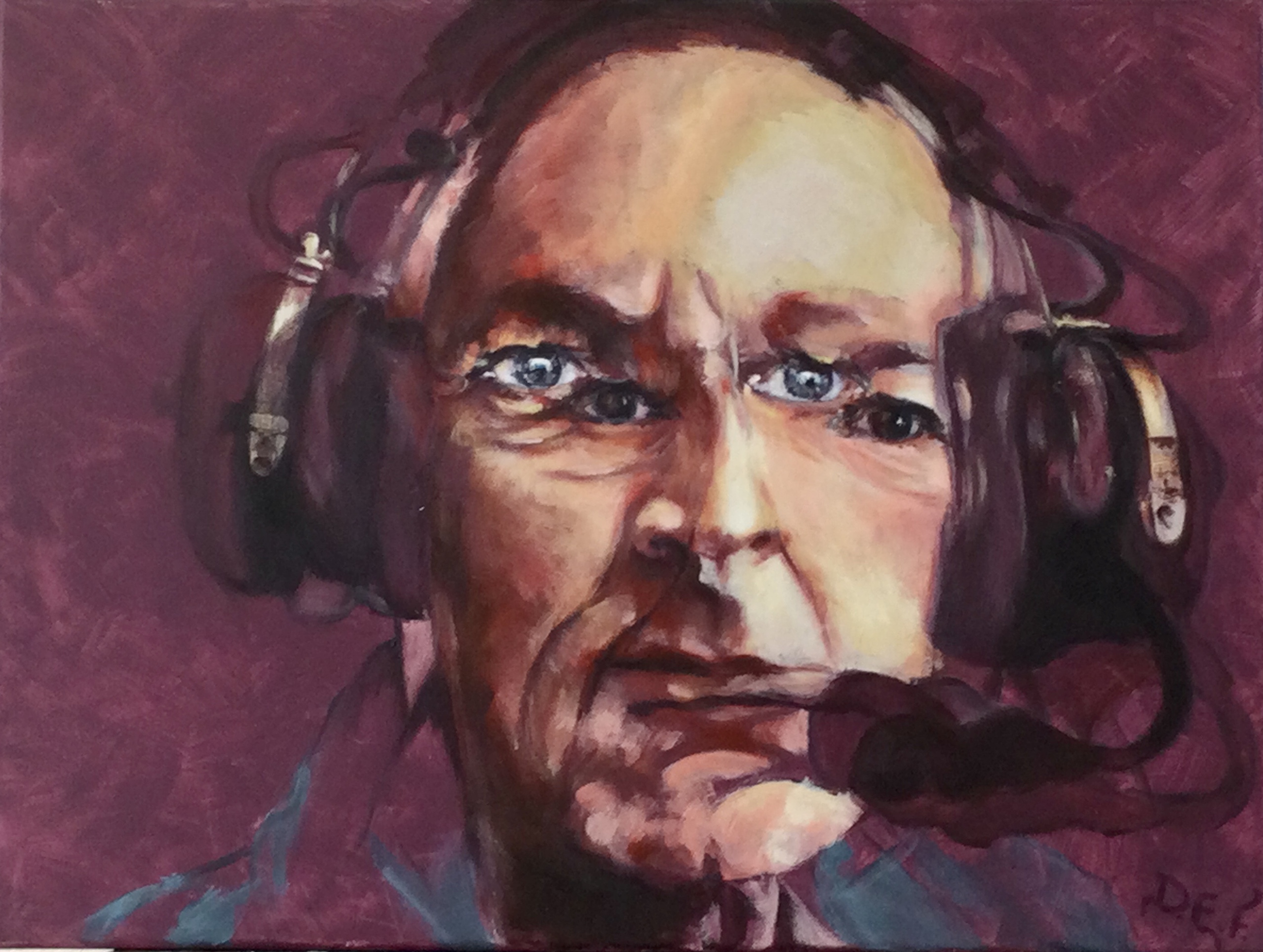 Cis Acryl Radio Connectie Hoofdtelefoon Purper Oranje Portret Realistisch Ogen Dubbel Zicht