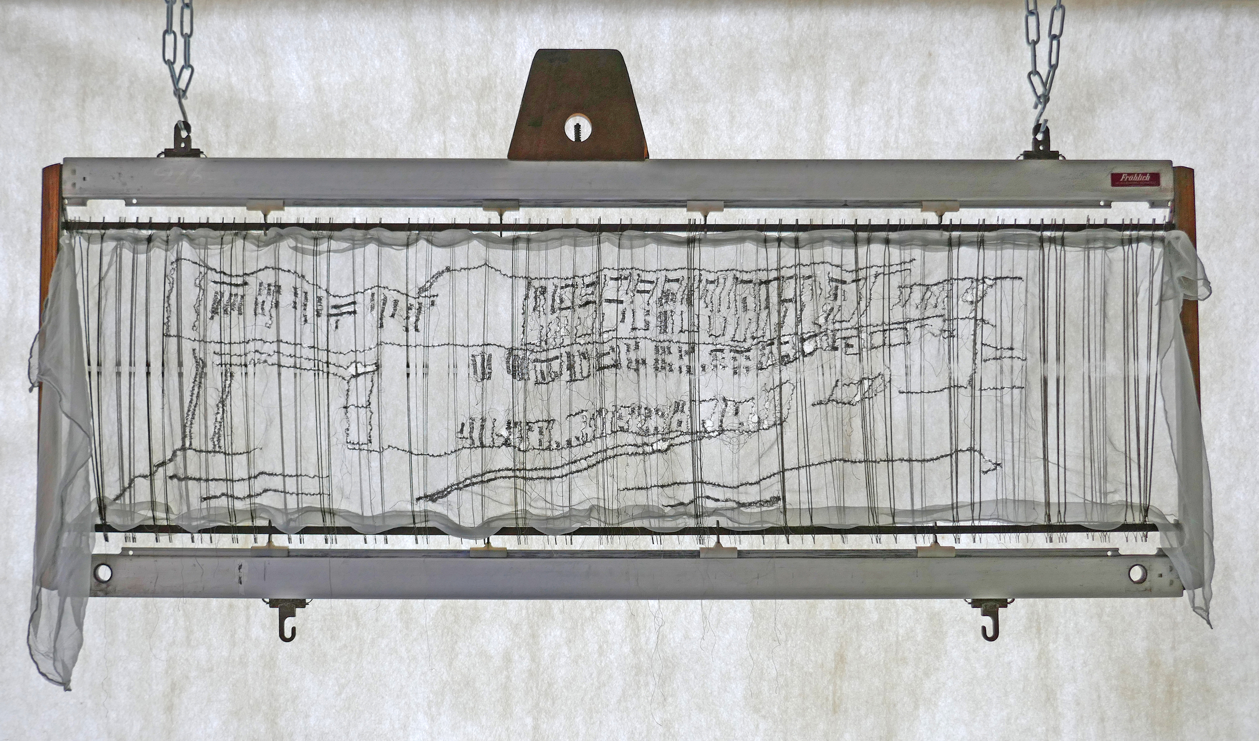zijde, glansgaren, weefgetouw schacht met hevels uit het voormalig textiellaboratorium van de Enka.