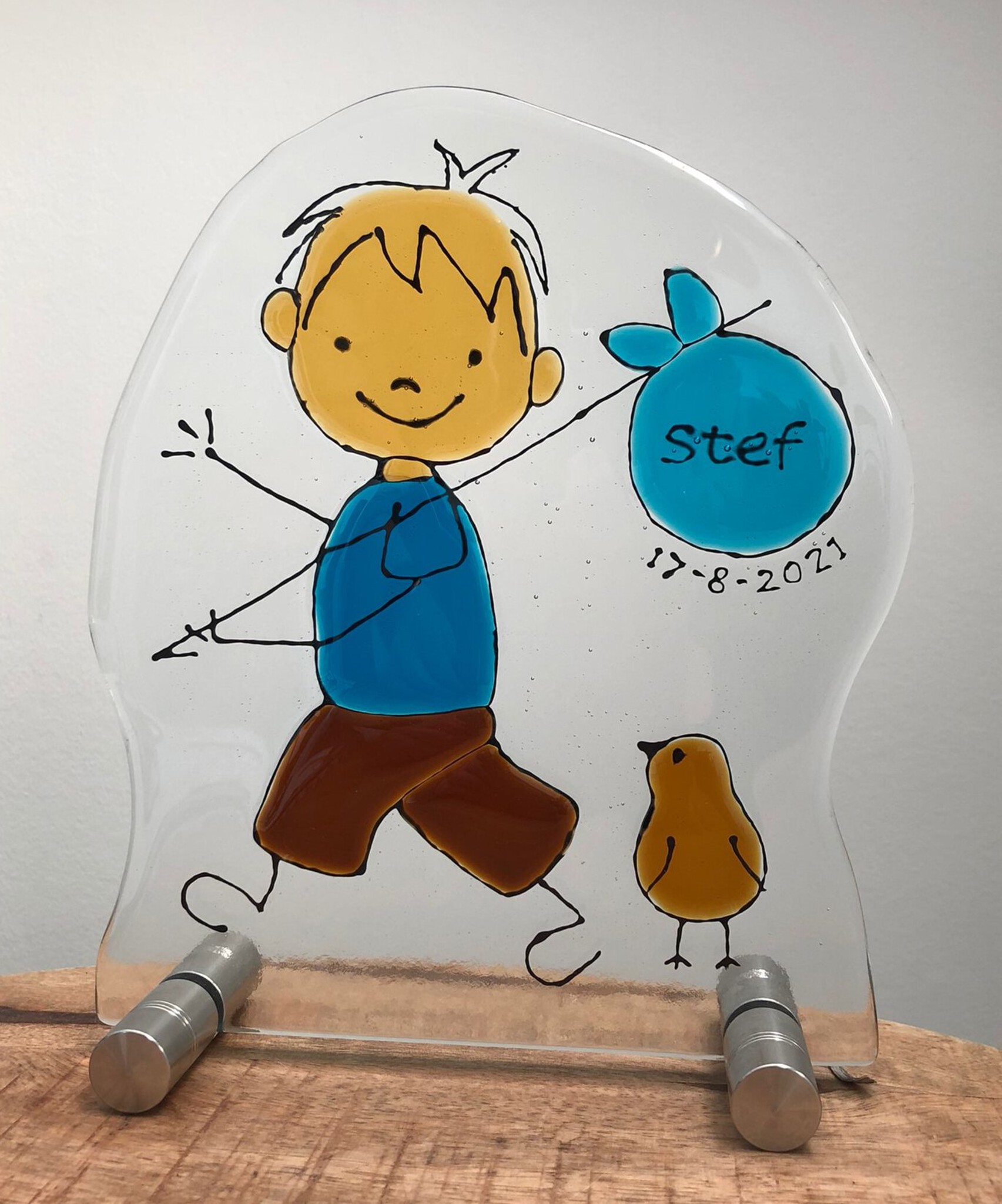 Abstract Glas Glasfusing Geboorte Jongen Cadeau Kado Kraamcadeau Glasfusion Geboortetegel Kraamkado Stef Glasfusen Knapzak Glasversmeltingstechniek