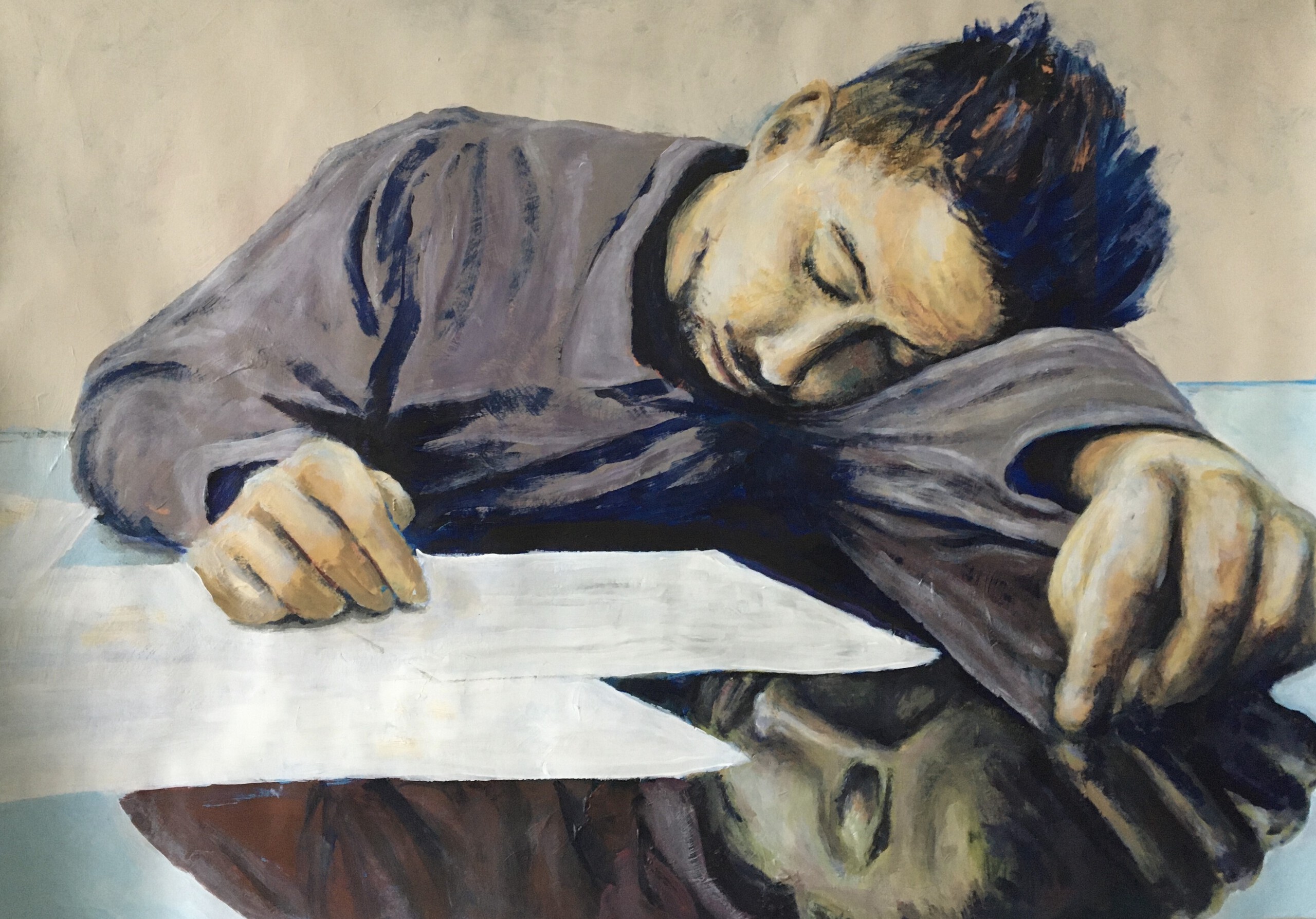 Raynold Bruessing, geboren in 1946 in Den Haag. Ik maak acrylschilderwerk op papier. Autodidact. Ik gebruik afbeeldingen op foto’s voor een verhalend resultaat met de verf.