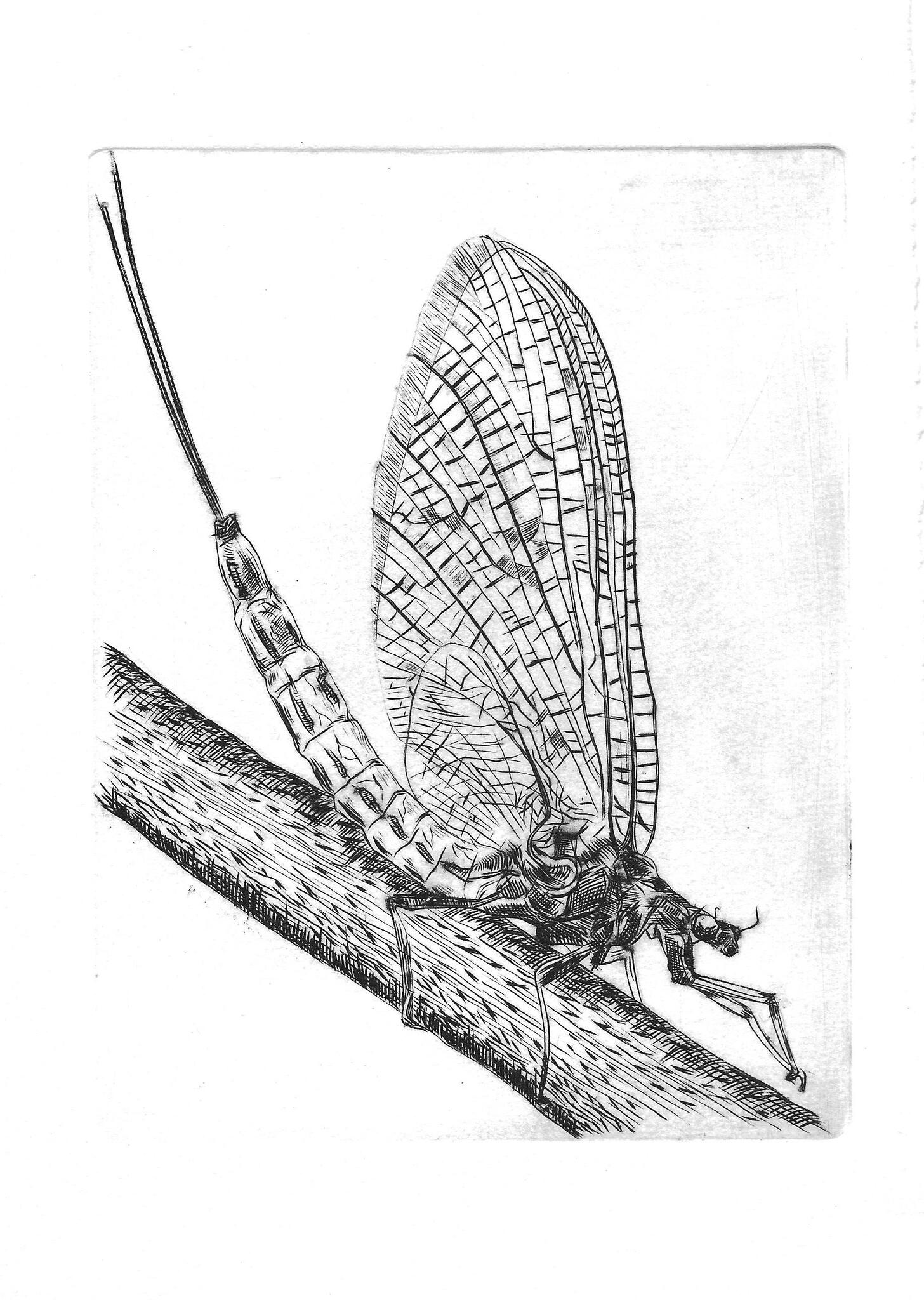 Eendagsvlieg gegraveerd in koper
