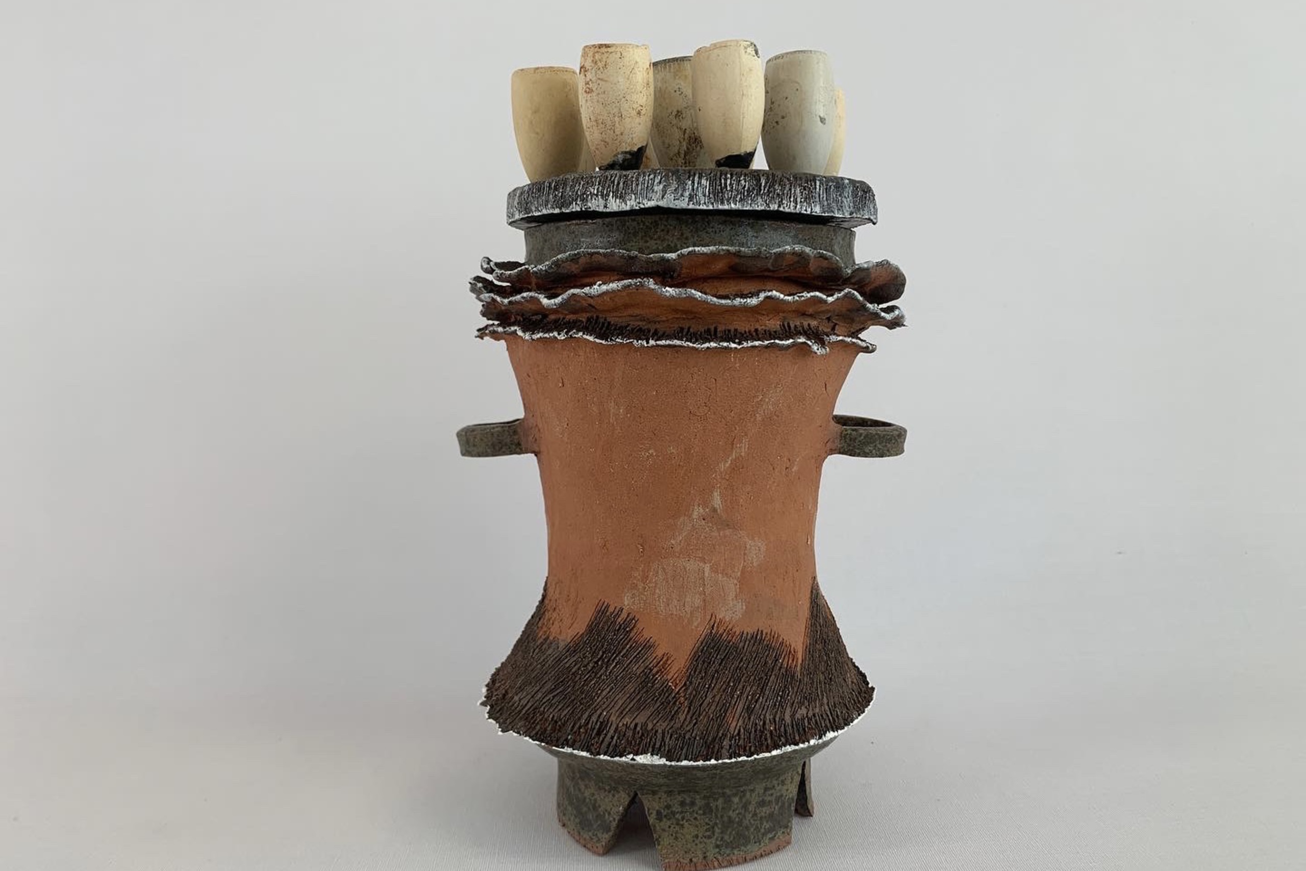 Keramiek Anneke Mulder (1955) Een ontdekkingstocht via Suriname terug naar mijn roots in De Beemster – dat is het verhaal van mijn keramiek. Na mijn opleiding Textiel aan de Amsterdamse Academie voor Beeldende Vorming (1983) volgde ik ook cursussen keramiek, waar ik aanvankelijk weinig mee deed. Dat veranderde toen ik in 2011/2012 in Suriname woonde. Ik werkte een jaar onder leiding van kunstenaar Soeki Irodikromo. De enorme rijkdom van thema’s in de natuur van Suriname was inspirerend. Terug in Nederland bleek echter ook de klei uit mijn eigen omgeving geschikt voor eigenzinnige toepassingen. Inmiddels werk ik met klei uit de Beemster, Purmer en Katwoude. In mijn werk neem ik ook de scherven en pijpenkoppen mee die ik vind in mijn moestuin en de polder. I