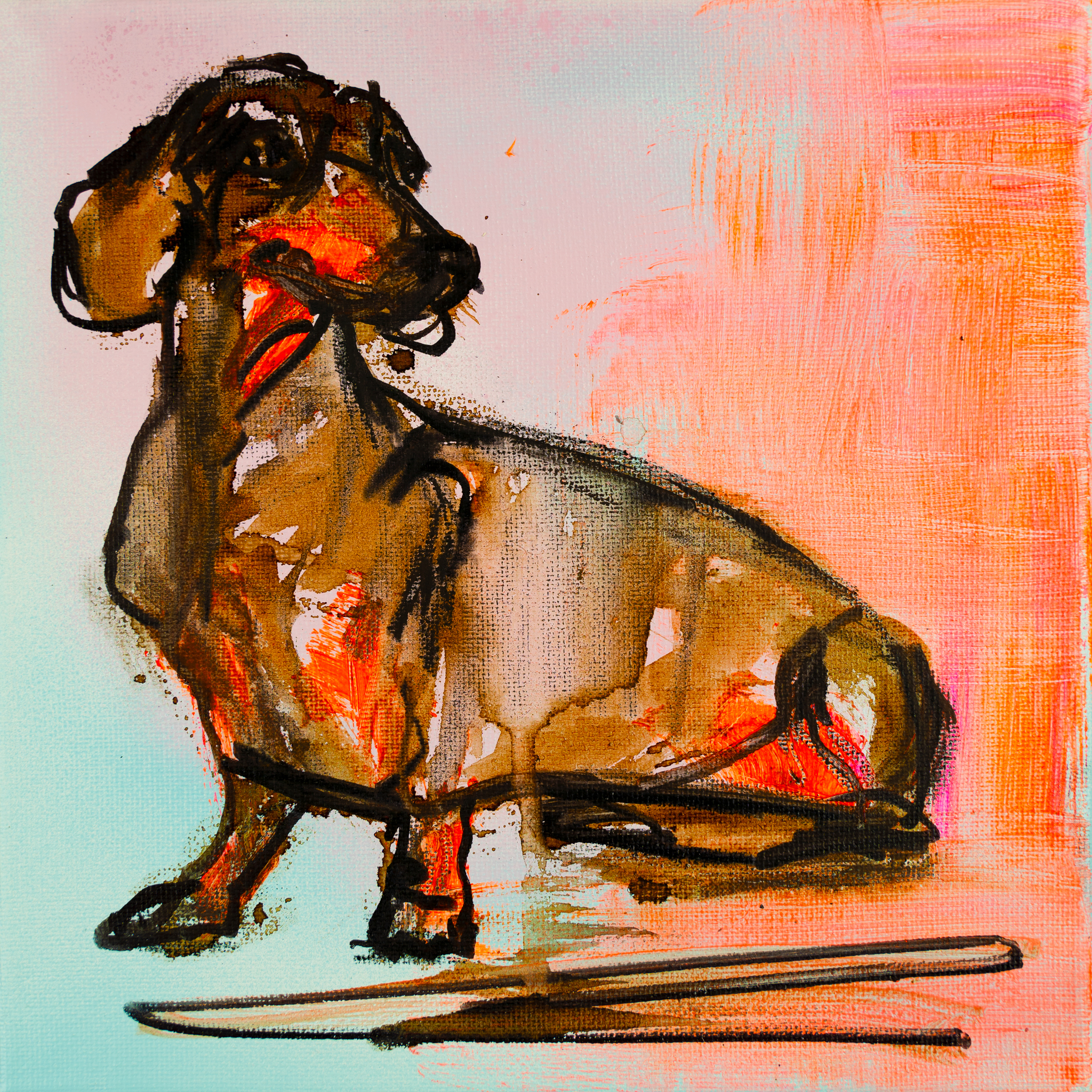 Snel schilderij van een teckel