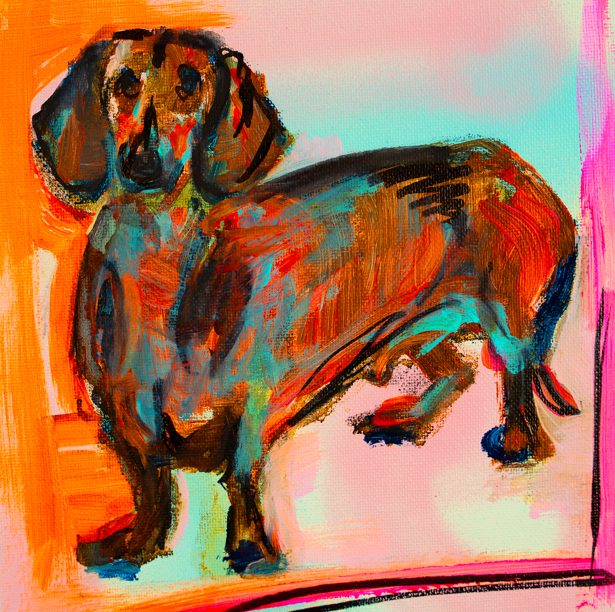 Schilderij Bruin Hond Kleur Huisdier Teckel Print Lief Snel