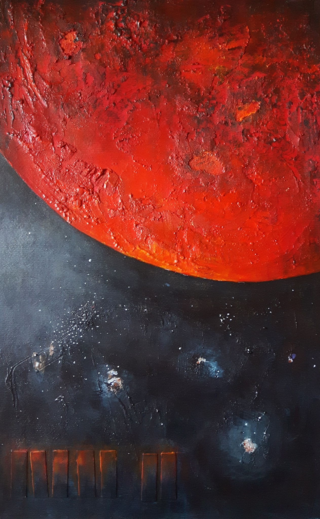 Apocalypse 3 (op 360 grams papier) verwijst naar de wereldberoemde film Apocalypse Now (1979) van Francis Ford Coppola. Die op zijn beurt de film weer baseerde op de roman Heart of Darkness (1899) van Joseph Conrad. In de film spelen o.a. steracteurs als Marlon Brando en Martin Sheen de hoofdrollen. Ten tijde van de Vietnamoorlog wordt Captain Willard de jungle ingestuurd om Colonel Curtz te vinden en te vermoorden. Kurtz (Brando) heeft zijn eigen leger opgebouwd. Terwijl Willard (Sheen) de jungle in vaart, worden hij en de bemanning langzaam overvallen door de gevechten en de gekte van de omgeving. Hun zoektocht brengt hen langs de meest vreemde plekken en vreemde figuren. Langzaam beginnen zij de ellende van de oorlog te doorzien. Voor ze het weten is het meer een kwestie van overleven dan van het vinden van Kurtz. In 2022 is Vladimir Poetin de ‘man in de jungle’. Maar misschien nog wel lastiger te traceren dan Kurtz in Apocalypse Now. Toch ademt mijn Apocalypse meer rust en vrede uit, vind ik. Doet me zelf meer denken aan een eindeloze reis naar de eeuwigheid. Dood en verderf zijn al gepasseerde stations.