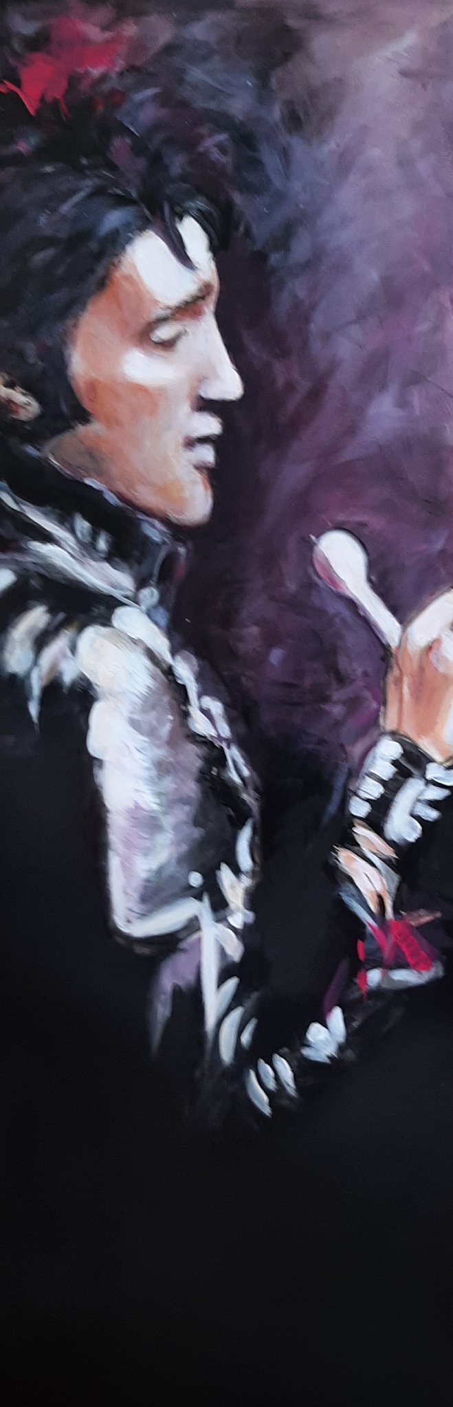 Elvis come back concert 1968. Ben een beetje van hem gaan houden. Deze blik heb ik gevangen. Acryl op doek.