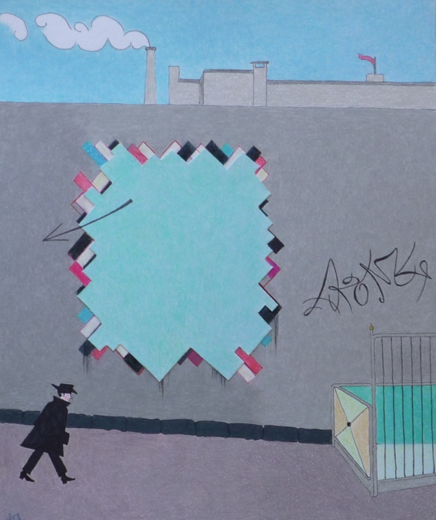 Grijs Rood Zwart Blauw Man Leegte Lichtgroen Muur Kooi