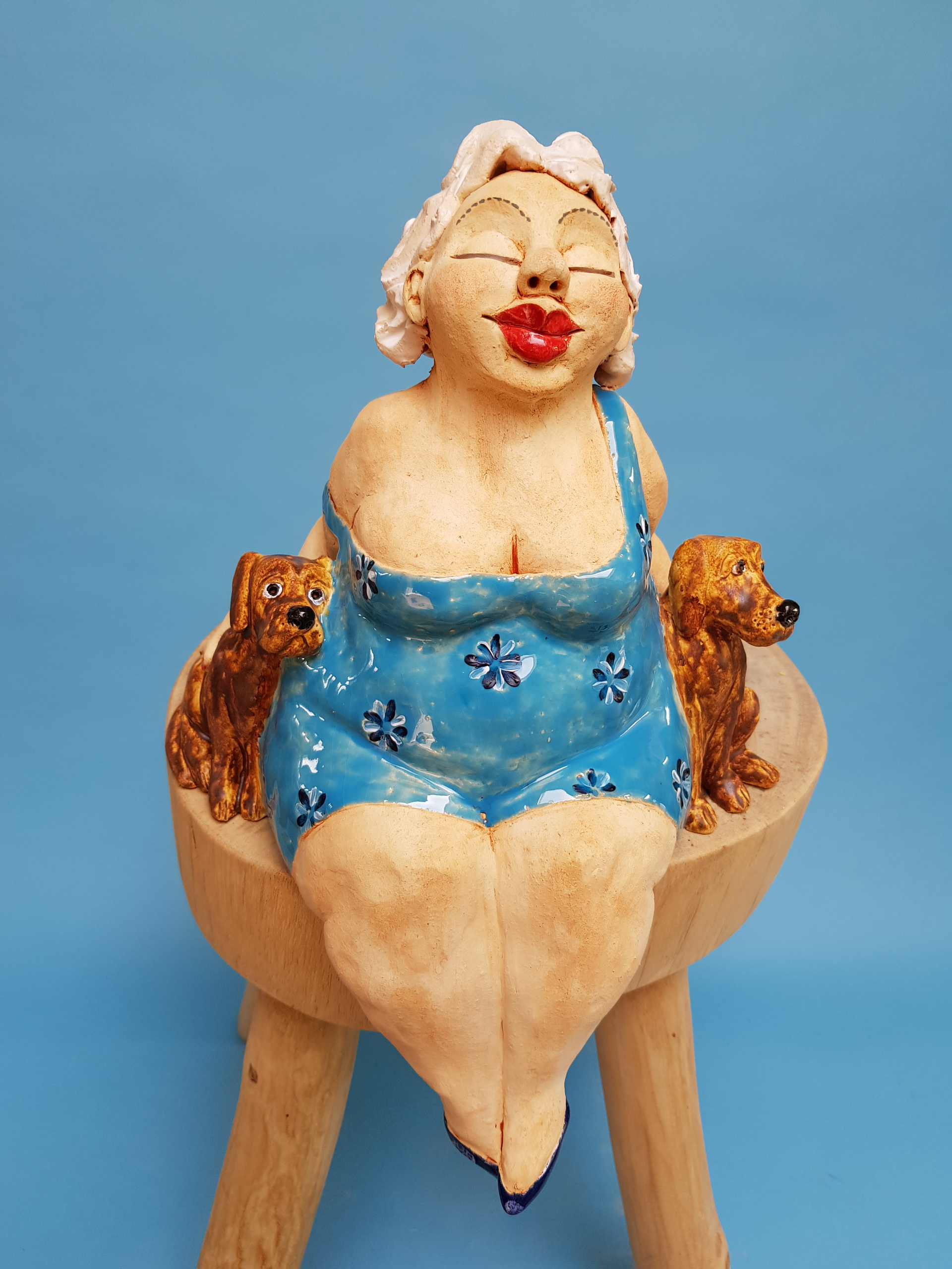 Blauw Vrouw Honden Dik Keramiek