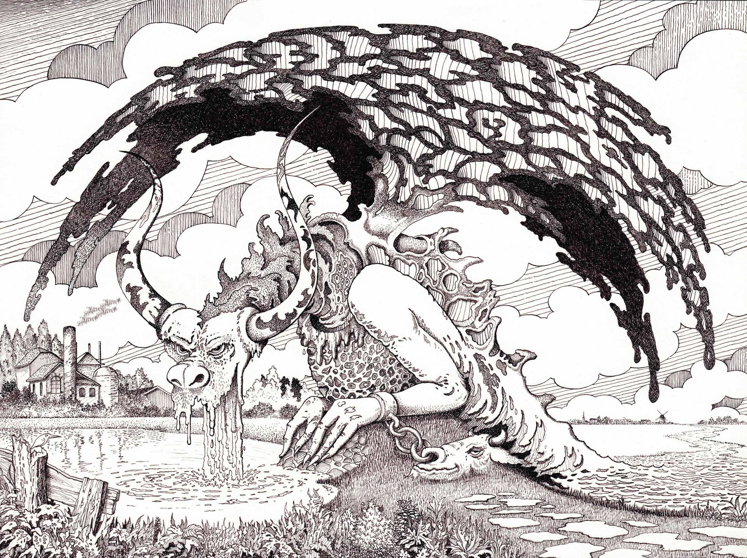 Water Polder Pen&inkt Duivel