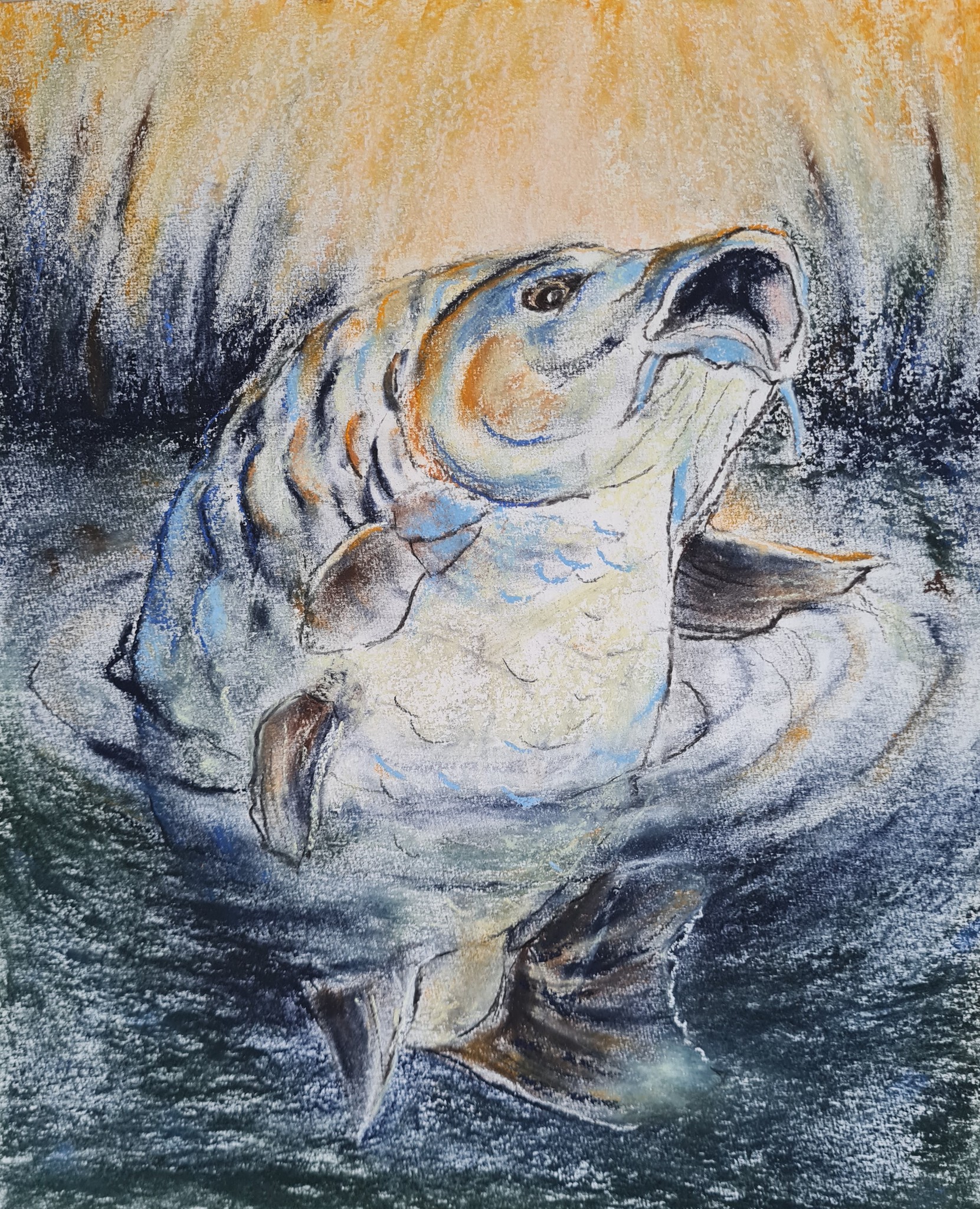 Pastel Karper in vijver uit fabel Winterjas, fabelbundel Krokobil' en andere fladderende fabels. Zo doen zij dat!