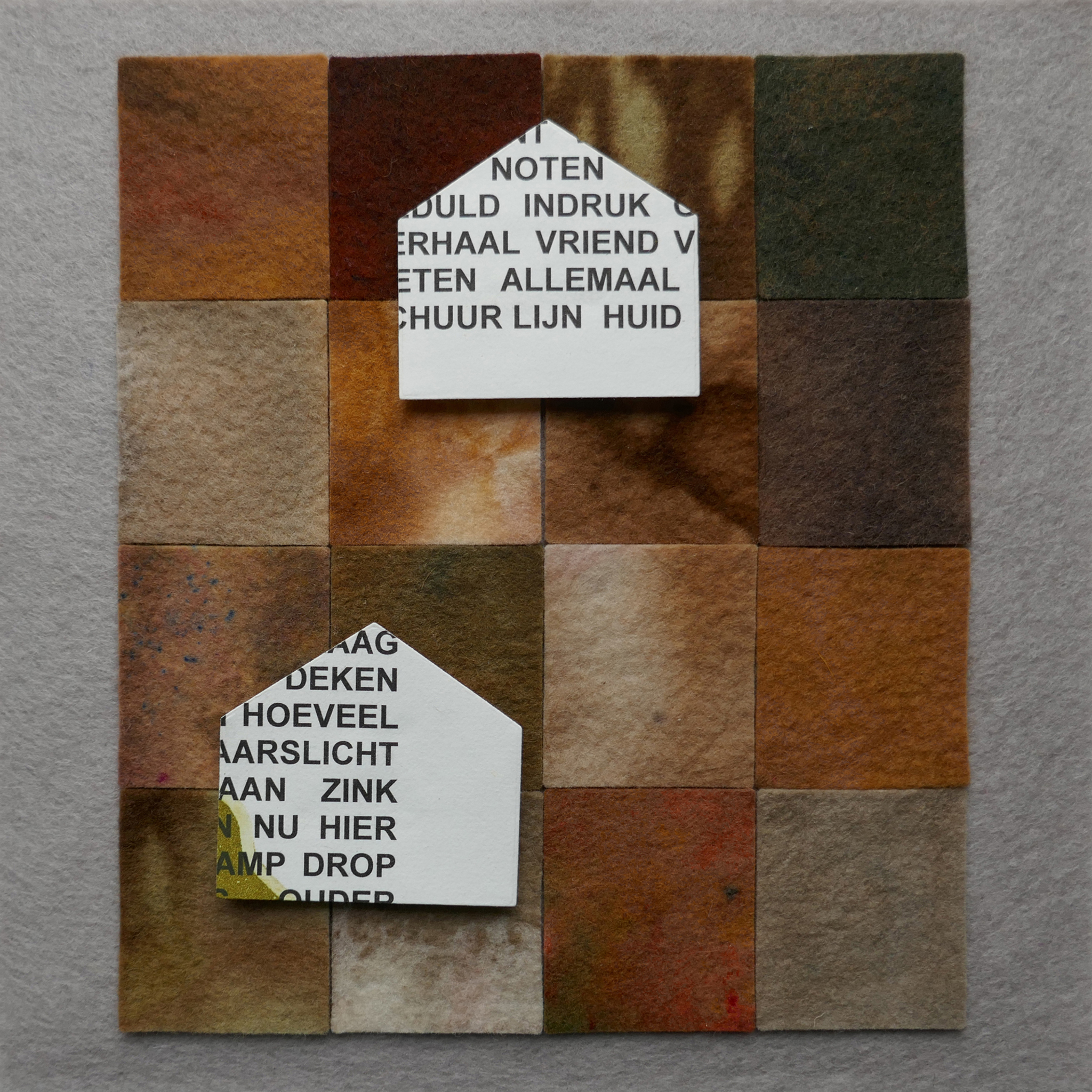 Lia Stouten: grafiek José van Loon: handgeverd wol vilt (vilt, papier, 3D ingelijst)