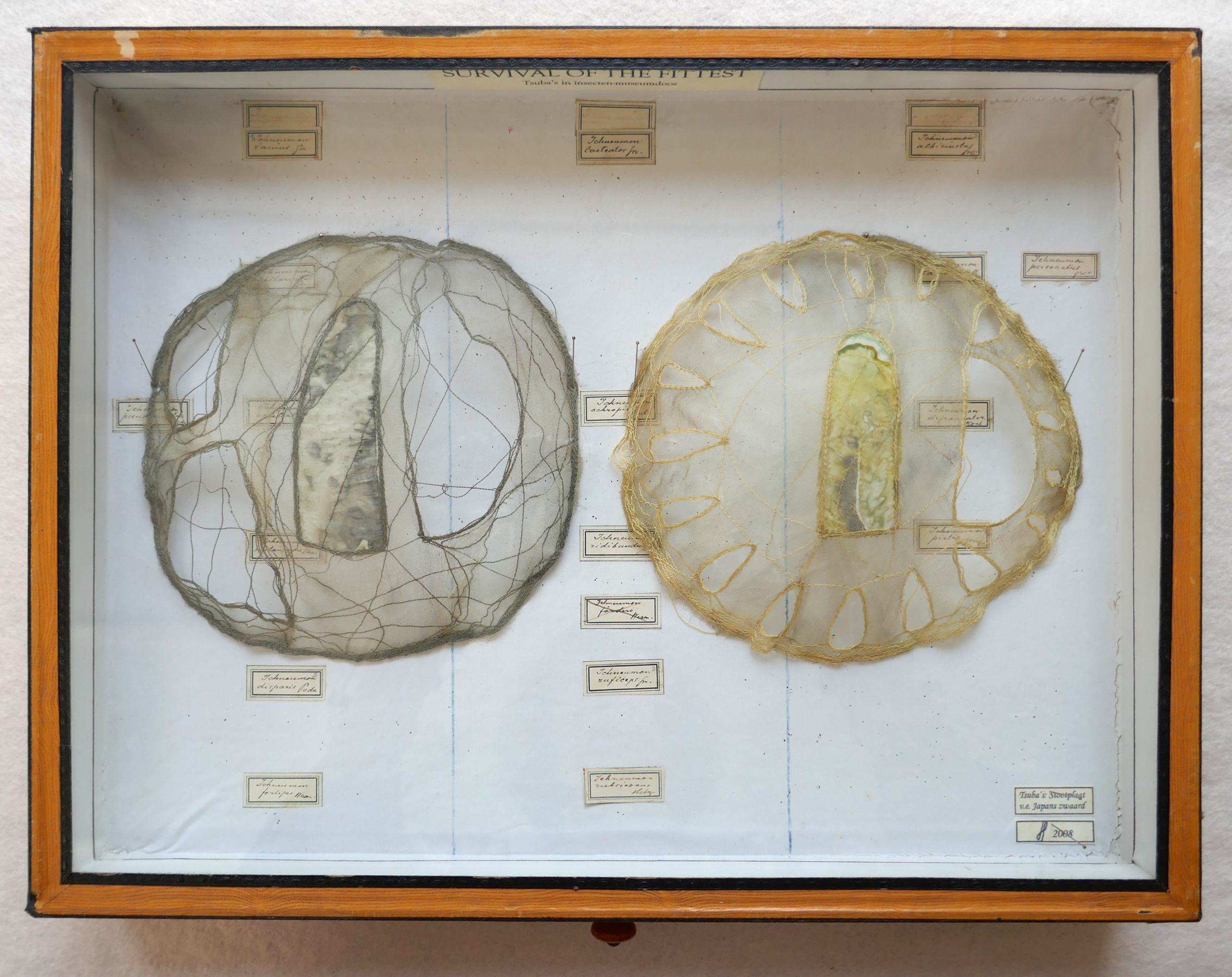 naaigaren, zijde, oude insectendoos (Tsuba's van Japanse zwaarden). Foto met dichte deksel.