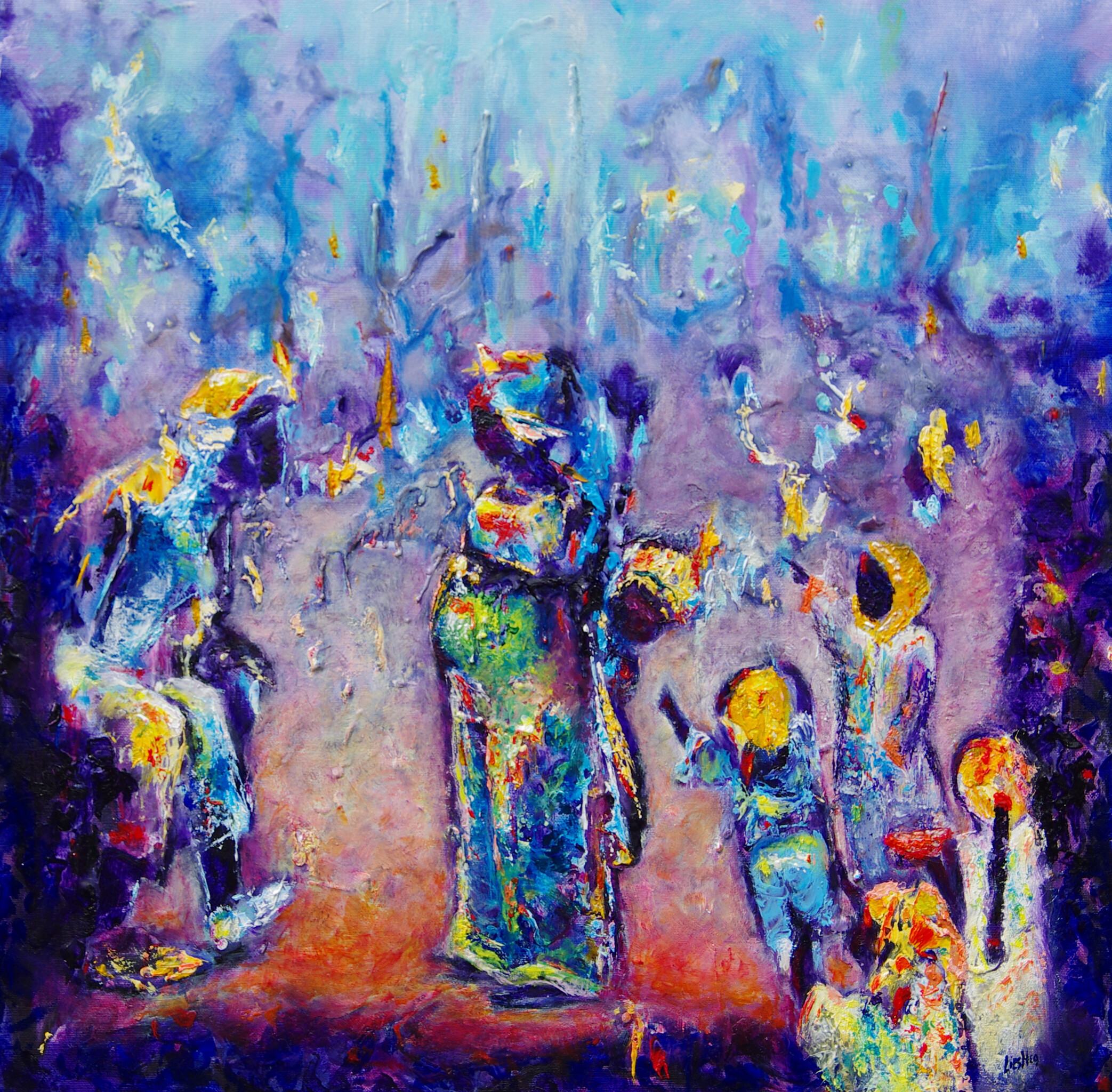 Zolang we samen zijn is er kans op voorspoed. Dit werk van bijenwas en olieverf op doek groeide uit tot een Afrikaans tafereel. Een boodschap voor ons allemaal: alléén samen kunnen we groeien in welvaart...60x60 Olieverf mixed media 3D