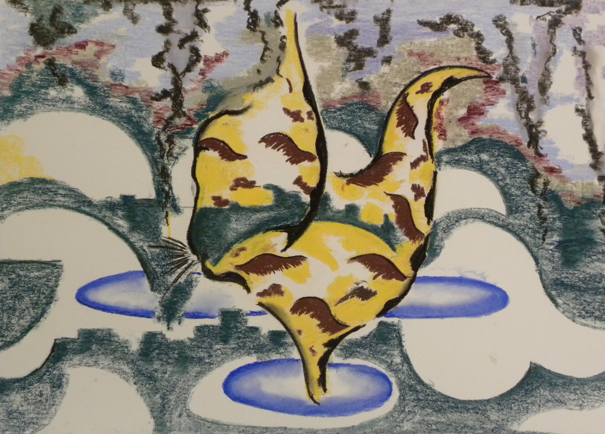 Een pasteltekening op groot formaat waarin de adem staat voor nieuw leven.