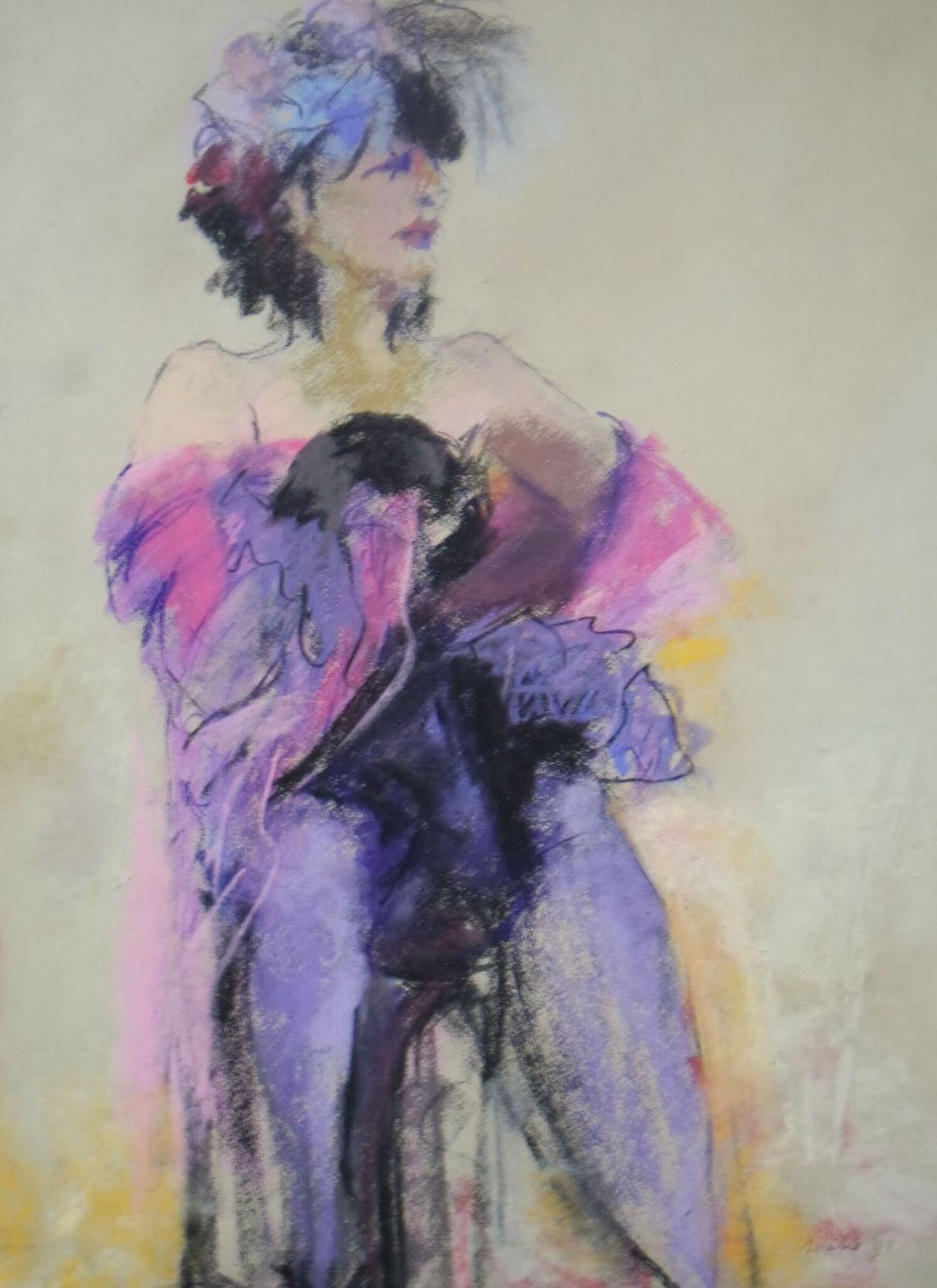 Van Margarita heb ik veel pastels gemaakt, vooral in het atelier van Anton Assies. Zij was een supermodel. Deze pastel zit in een zwarte lijst met passepartout. De buitenmaat is 50x70 cm.