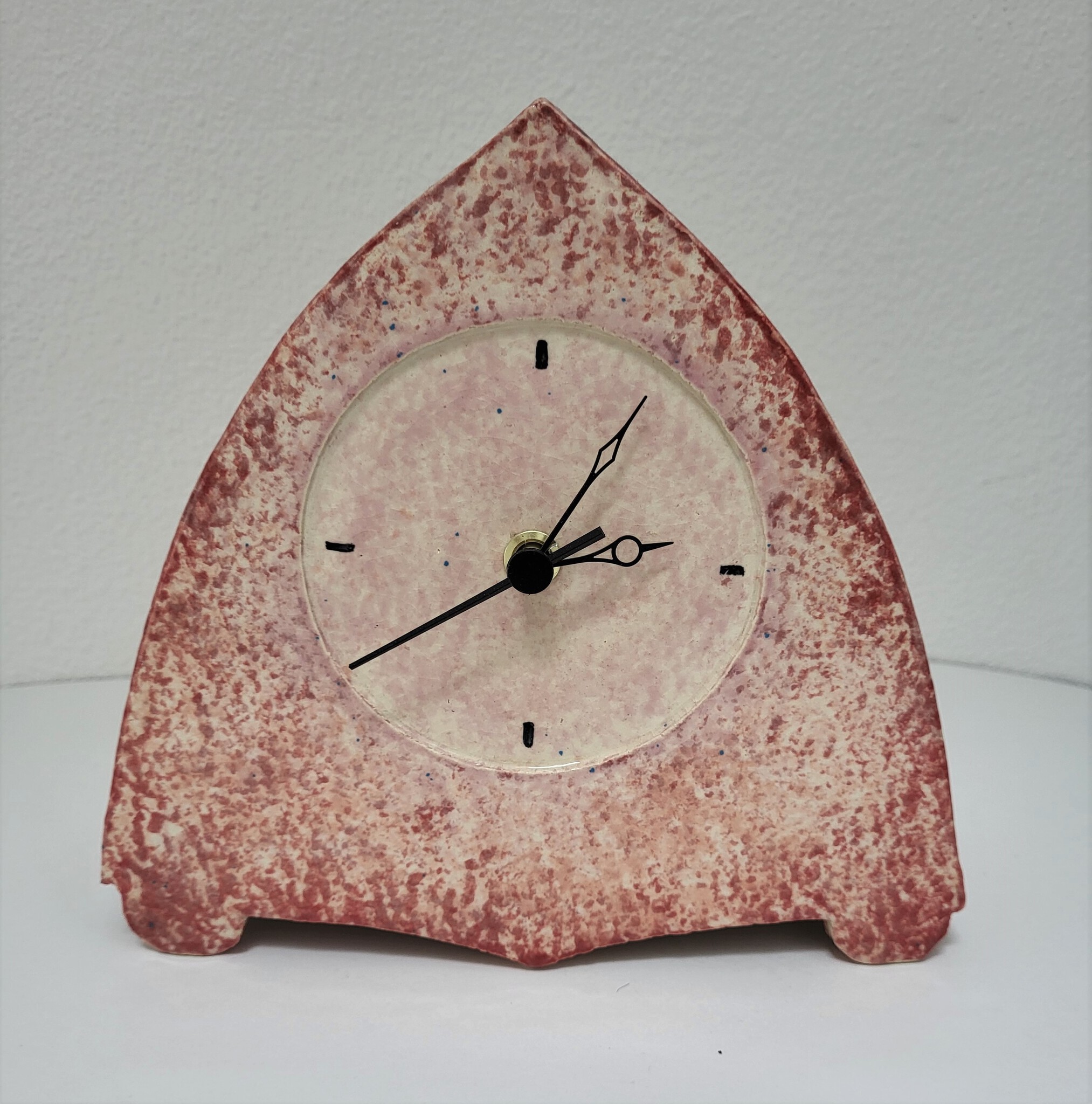 Deze klok is gemaakt naar aanleiding van de tentoonstelling "De Amsterdamse school" Het model is daarop geinspireerd. De klok is gemaakt van witte chamotte klei en later bewerkt met glazuur. Hij werkt en loopt op tijd, dankzij het Quarz uurwerk aan de binnenkant.