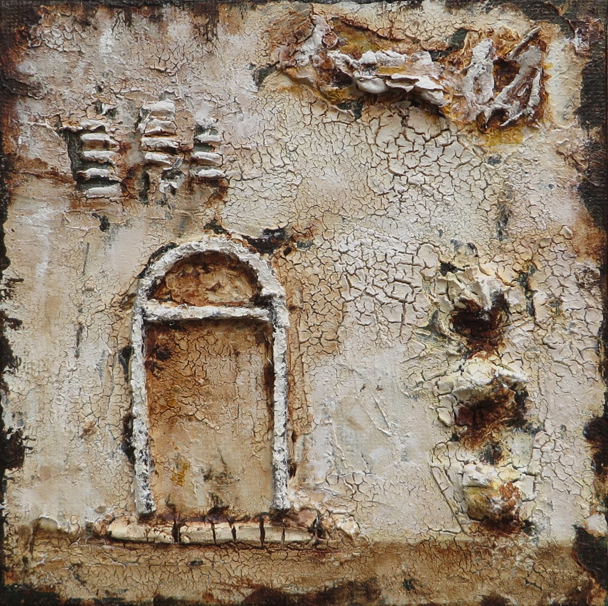 Mixed Media Acrylverf Poortje Muur Naturel Vervallen Barsten