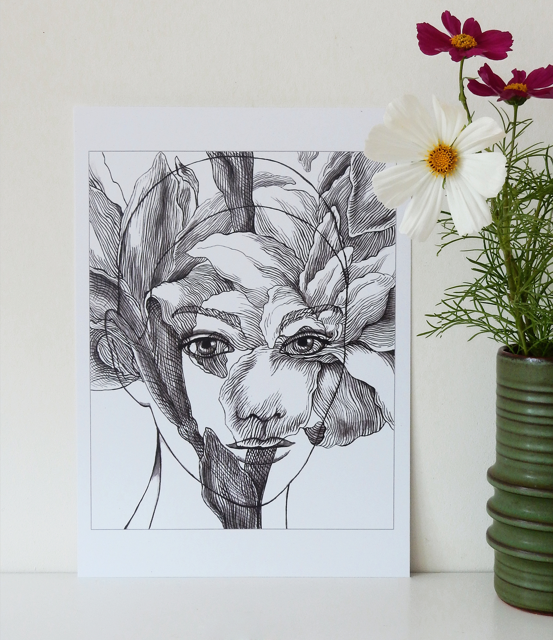 Artprint op A4 formaat: 21x29.7 cm. Gedrukt op 100% gerecycled wit FSC papier (350 grams). Print in een open oplage; gesigneerd op de achterkant. Kijk voor meer informatie en een grotere afbeelding bij mijn Vrouwen - tekeningen.
